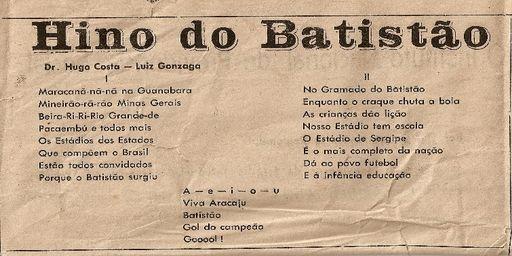 A construção do Batistão aconteceu em tempo recorde para os padrões da época. Em pouco mais de um ano, o governador do estado, Lourival Baptista, entregava um estádio que colocou Sergipe em destaque na vitrine do esporte no país. "A expectativa pela abertura dos portões tomou conta dos sergipanos da capital e do interior em 9 de julho de 1969. As pessoas fizeram tudo para estar presentes à inauguração do estádio, considerado um dos mais modernos à época. Havia mais 40 mil pessoas lá dentro naquele dia, vi gente até nas torres de iluminação", conta o narrador de futebol.