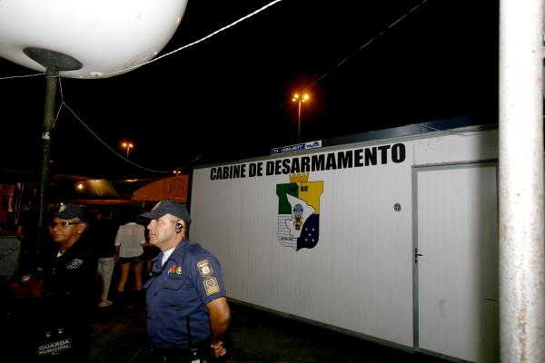 Cabines de desarmamento foram instaladas ao lado das entradas que dão acesso ao espaço do forró. Nelas são feitos os cadastramentos, recolhimentos e devolução das armas àqueles que têm registro.