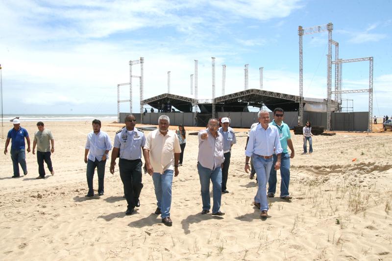 O prefeito de Aracaju, Edvaldo Nogueira, vistoriou ontem, quinta-feira, a montagem da estrutura para a festa de Reveillon na Orla de Atalaia, que esse ano terá grandes atrações: Beth Carvalho, Rita Lee, Banda Java e música eletrônica até o dia amanhecer. As obras serão entregues amanhã, sexta-feira, no final do dia, e incluem dois palcos, nove camarins, hause-mix (mesa de som), tenda eletrônica, abrigo para os serviços de apoio, como Copo de Bombeiros, Polícia Militar, Samu e Conselho Tutelar da Criança e o Adolescente, além de 12 postes fixados pela Energipe para melhorar a iluminação da área. Cerca de 40 profissionais trabalham no local.