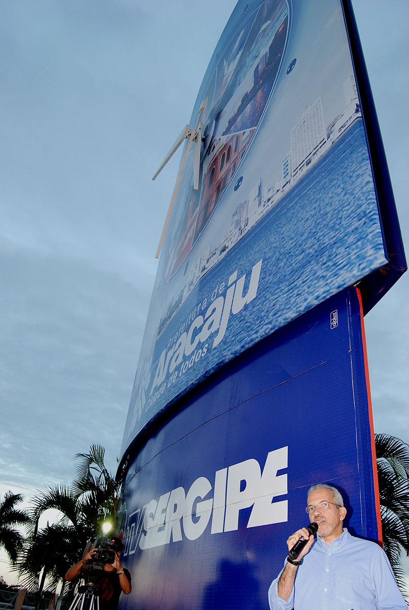 Em solenidade realizada no final da tarde de hoje, domingo, o prefeito Edvaldo Nogueira, juntamente com diretores da TV Sergipe, e do presidente da Emsurb, Sílvio Santos, acionou o dispositivo que colocou o relógio para funcionar, depois de completa reforma onde foram investidos aproximadamente R$ 80 mil. Foi feita a substituição da lona que compõe o painel, recuperação da mecânica do relógio e do sistema elétrico. Além disso, a empresa de comunicação ficará responsável pela manutenção do relógio, garantindo a sua pontualidade.