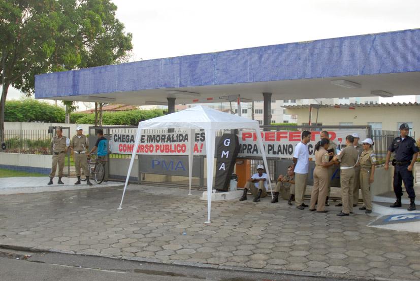 As duas entradas de acesso ao Centro Administrativo Prefeito Aloísio Campos amanheceram hoje, quarta-feira, fechadas por diversas faixas colocadas pelos grevistas da Guarda Municipal de Aracaju (GMA). O comando de paralisação da categoria decidiu de forma desrespeitosa para com os servidores municipais tentar não permitir o acesso destes com seus carros ao estacionamento da Prefeitura.
