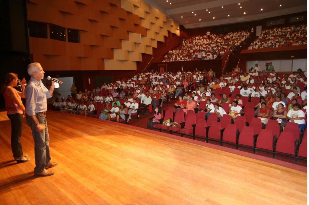 O auditório do Teatro Tobias Barreto foi palco da aula inaugural do Programa Nacional de Inclusão de Jovens (Projovem Adolescente) do Governo Federal, desenvolvido em parceria com a Secretaria Municipal de Assistência Social e Cidadania (Semasc) da Prefeitura de Aracaju (PMA). O lançamento dessa importante política nacional para a juventude ocorreu na manhã de hoje, quinta-feira, e contou com a presença do prefeito Edvaldo Nogueira, que falou da importância da arte, da cultura e da educação para a construção de um país mais justo, cidadão e próspero.