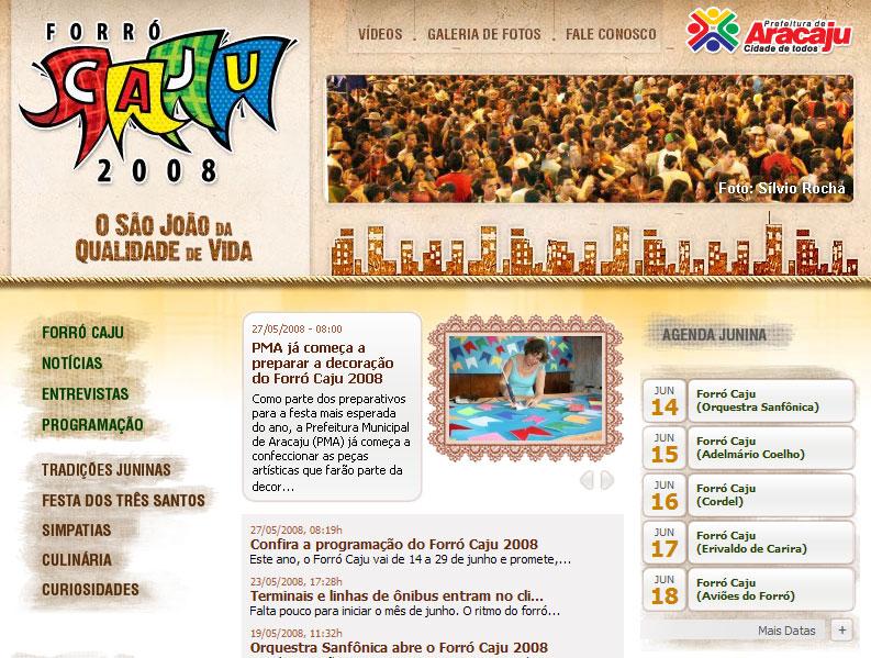 A Secretaria Municipal de Comunicação Social (Secom) está trabalhando na divulgação do Forró Caju 2008 em Sergipe e outros Estados. Toda a campanha publicitária está pronta há cerca de um mês e o resultado pode ser visto em outdoors, cartazes, folders e no hotsite, que já está sendo atualizado diariamente pela equipe de jornalistas da Secom. O conceito gráfico une elementos da xilogravura, que associam a capital sergipana com a cultura e a qualidade de vida.