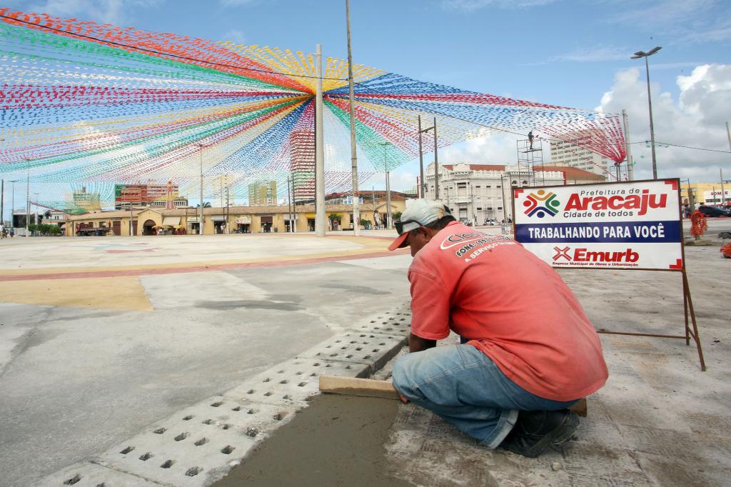 Já a Empresa Municipal de Obras e Urbanização (Emurb) já finalizou as obras de paginação do piso da praça de eventos Hilton Lopes, entre os mercados municipais. Quase 7 mil m² receberam pavimentação em concreto desempolado liso e estampado, com a marca do Forró Caju e outros motivos juninos, a exemplo de bandeirolas. A Prefeitura de Aracaju investiu R$ 272.471,58 na obra, iniciada no final de janeiro. Além de embelezar o local, a paginação vai acabar de vez com as irregularidades do piso, impedindo o acúmulo de água da chuva e permitindo que o público se desloque e dance sem se preocupar com eventuais buracos ou poças.