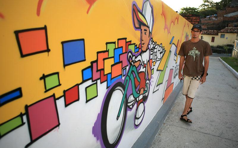 Para a praça Juiz Manoel Barbosa de Souza, no bairro Cidade Nova, foi pensada uma temática que exaltasse a infância e a juventude. Segundo Carlos André, o reconhecimento do grafite como arte capaz de alegrar a vida das comunidades é muito gratificante. "É muito bom trazer um pouco mais de cor, de alegria aos ambientes. Até aquelas pessoas que têm receio de visitar a periferia, ao se depararem com este tipo de arte, já ficam mais à vontade", constata. O grafiteiro concluiu o painel da praça Juiz Manoel Barbosa de Souza em duas semanas, já a arte na Caixa d´água foi concluída em um mês.