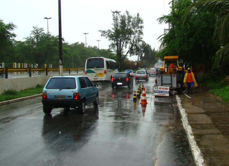 Devido à incidência de fortes chuvas durante o último fim de semana, a Prefeitura de Aracaju, por meio da Empresa Municipal de Obras e Urbanização (Emurb), montou um programa de atuação em caráter emergencial para solucionar os problemas provocados pelo grande volume de água. Desde o fim de semana, o trabalho tem sido intenso para liberar os acessos das vias e garantir a segurança do tráfego.