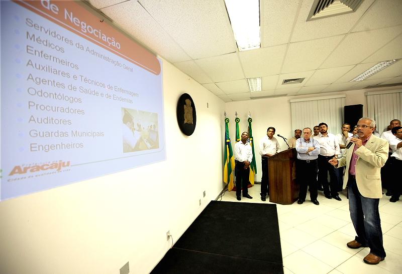 No início do mês de dezembro a Comissão de Negociação Salarial, composta pelos secretários de Finanças, Jeferson Passos, de Gabinete, Bosco Rolemberg e Controle Interno, Lucivanda Nunes, iniciou a discussão salarial com os sindicatos de cada categoria a fim de negociar os salários. "Nosso desafio era conceder o maior reajuste linear que pudéssemos. Agradeço aos secretários que foram responsáveis pela preparação, debate e encontro com diversos sindicatos ao longo dos últimos meses", relembrou Edvaldo.