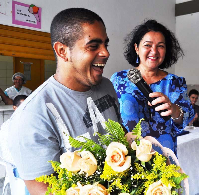 Após a entrega de flores e placa de homenagem, uma salva de palmas foi dedicada aos estudantes Laise de Farias e Ítalo Oliveira, do 9º ano. Eles conquistaram o segundo e o terceiro lugar na categoria memórias literárias, do ‘I Concurso Artístico-literário da Rede Municipal de Ensino', cuja cerimônia de premiação aconteceu nessa terça-feira, 10, no Ginásio de Esportes do Serviço Social da Indústria (Sesi), localizado no conjunto Augusto Franco, também como forma de festejar o 11 de agosto.