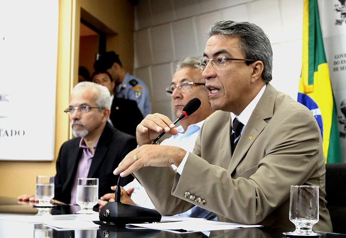 Na manhã desta segunda-feira, 10, o governador Marcelo Déda realizou entrevista coletiva para anunciar os nomes dos novos secretários estaduais que tomam posse ao longo dos meses de janeiro e fevereiro para este segundo mandato, assim como a criação de novas pastas administrativas. A solenidade, realizada no Palácio dos Despachos, contou com a presença do prefeito de Aracaju, Edvaldo Nogueira.