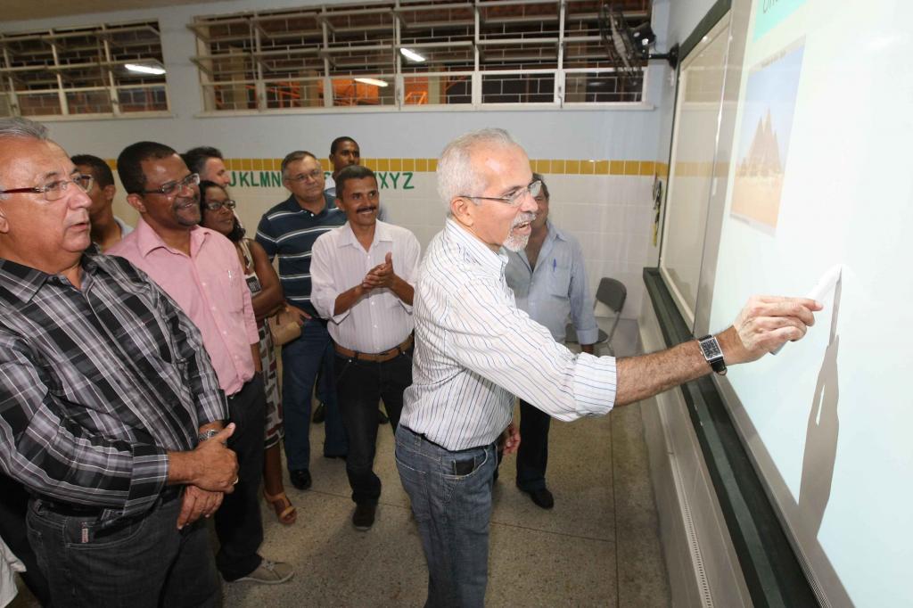 Ele demonstrou o funcionamento da lousa digital, deixando estudantes e mães de alunos eufóricos com a novidade. "Investir na educação é investir no futuro dessas crianças que poderão concorrer em pé de igualdade com as crianças que estudam nas escolas particulares", disse emocionado.