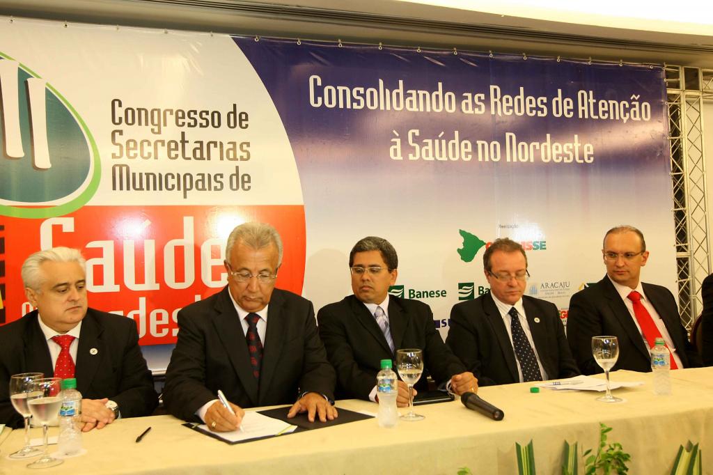 Durante a solenidade de abertura do evento, o governador em exercício do Estado de Sergipe, Jackson Barreto, o secretário de Estado da Saúde, Antônio Carlos Guimarães, e o secretário de Gestão Estratégica e Participativa do Ministério da Saúde, Luiz Odorico Monteiro, assinaram o documento que oficializa a fusão entre o Samu 192 Aracaju e o Samu 192 Sergipe.