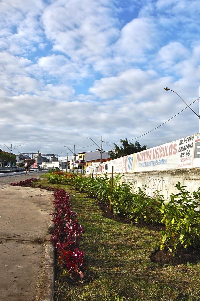 Para a revitalização, foram escolhidas cinco variedades de espécies arbustivas (da família das dracenas e das ixoras) mesclando entre amarelas, vermelhas e cor-de-rosa. "Utilizamos oito manilhas e adubamos com terra vegetal. Ao todo, são 100 unidades de mudas para o bairro", explicou o fiscal de Paisagismo da Emsurb, Valdir Santos.