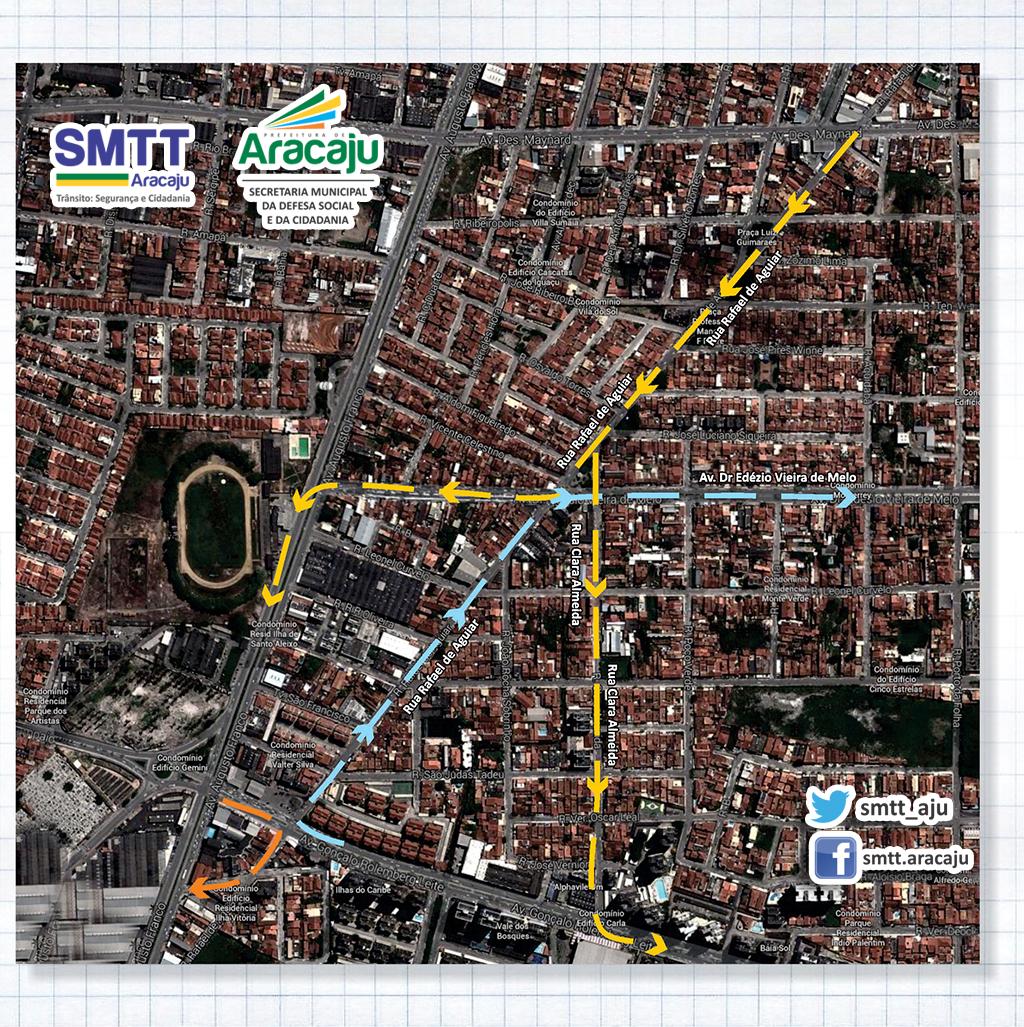 A Superintendência Municipal de Transportes e Trânsito (SMTT), órgão vinculado à Secretaria Municipal da Defesa Social e da Cidadania, informa mudança de circulação nos bairros Pereira Lobo e Suíssa. As principais intervenções acontecem na rua Rafael de Aguiar e avenida Dr. Edézio Vieira de Melo.