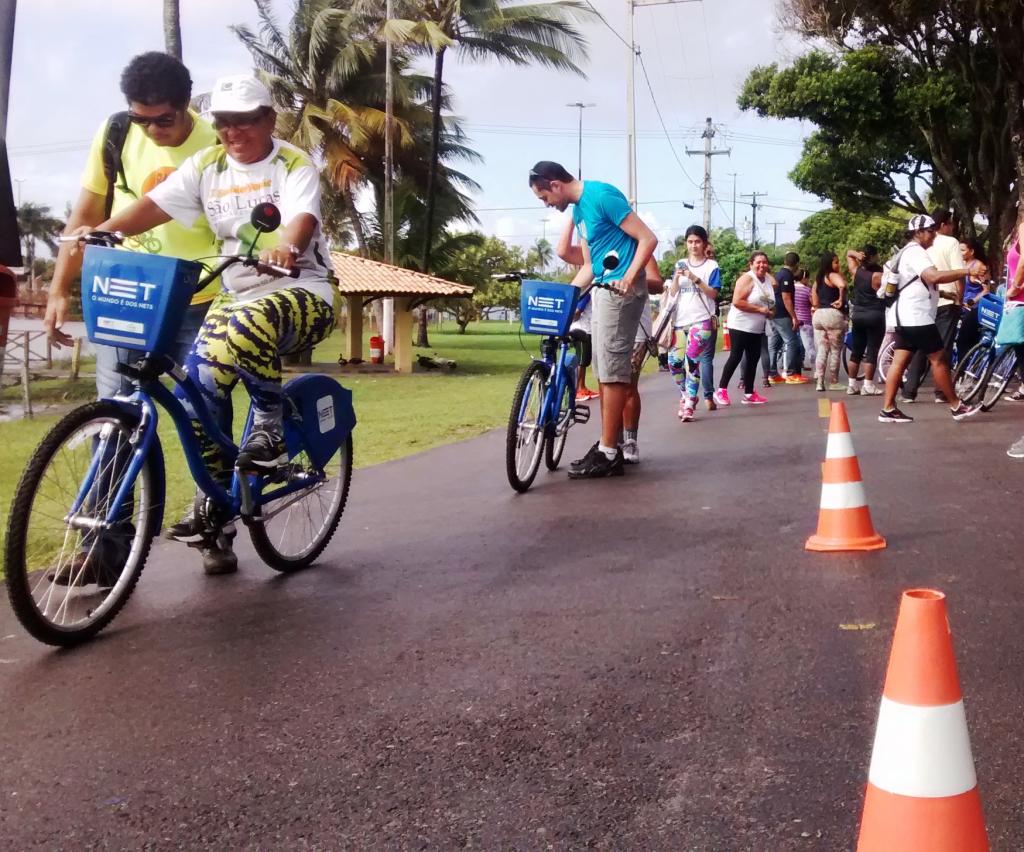 A senhora Jurineide Andrade, que faz parte do grupo de idosos da Academia da Cidade, participou das atividades alusivas realizadas pelo órgão de trânsito, em parceria com a ONG Ciclo Urbano e a Escola Bike Anjo, e diz que “foi bom aprender a pedalar. Vou praticar e quando eu conseguir andar sozinha, posso usar a bicicleta para passear".