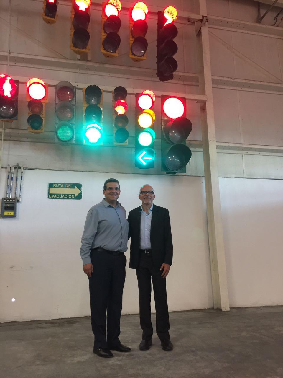 O prefeito de Aracaju, Edvaldo Nogueira, visitou, nesta segunda-feira (27), em Monterrey, no México, a fábrica da empresa Semex, que produz semáforos inteligentes e controladores de tráfego, entre outros equipamentos voltados para o trânsito, que são utilizados em grandes cidades em todo o mundo. A visita foi a primeira parada da viagem de trabalho realizada pelo gestor municipal para conhecer soluções de mobilidade urbana. Na Semex, Edvaldo foi recepcionado pelo presidente da empresa Alejandro Brunell, e pelo vice-presidente, Raul Tellez.