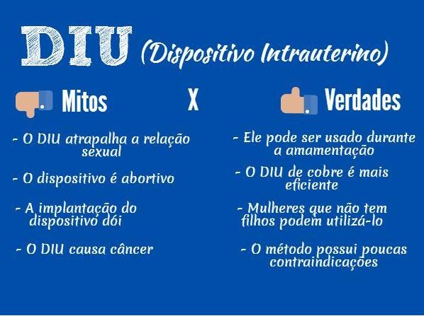 Ainda de acordo com ela, embora a Rede de Atenção Básica esteja devidamente preparada para fazer a colocação do DIU, a procura pelo dispositivo ainda é baixa, em decorrência dos mitos e preconceitos. Para se ter uma ideia, em média, por mês, são realizadas na Rede cinco inserções do DIU, enquanto são distribuídas 1.700 cartelas de anticoncepcionais as usuárias do Sistema Único de Saúde (SUS).