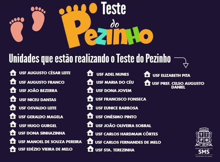 "O Teste do Pezinho é realizado gratuitamente em 22 unidades de saúde e elas são porta aberta. Ou seja, o bebê pode ser levado em qualquer uma das unidades, independente do bairro que os pais ou o responsável moram. Porém, infelizmente, a procura pelo exame não é tão grande como deveria. Então precisamos alertar cada vez mais a população sobre a importância deste exame. O teste pode detectar precocemente doenças e começando o tratamento mais cedo, há menos chance de sequelas", disse.