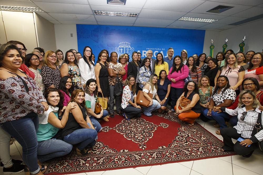 A solenidade de assinatura dos contratos foi prestigiada pelos secretários municipais, por diretores e coordenadores da Educação, além dos novos professores.