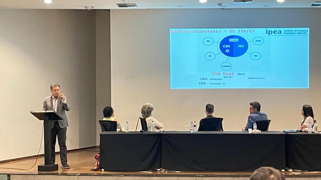 Ele também contextualizou os efeitos da reforma tributária (EC 132/23), que estabelece base ampla, não cumulatividade plena, princípio do destino e desoneração de exportações e investimentos. O cronograma prevê: