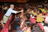 O prefeito Edvaldo Nogueira participou na tarde de ontem, quarta-feira, do lançamento da terceira edição do Projeto Minha Vida Tem História, por meio do qual a história de Aracaju é narrada pela ótica dos idosos atendidos pelos programas sociais desenvolvidos pela Prefeitura de Aracaju, através da Secretaria Municipal de Assistência Social e Cidadania (Semasc). Uma peça teatral na qual foram encenadas histórias contadas pelos idosos marcou o lançamento, que aconteceu no Teatro Tobias Barreto. Estamos fazendo uma homenagem àqueles que ajudaram a construir a cidade, aqueles que trabalharam, batalharam para que a gente pudesse chegar aqui. A sociedade depende do trabalho de cada um. Essas histórias que foram contadas são de pessoas que, à sua maneira, deram uma imensa contribuição e fizeram história, porque a história não é apenas a história oficial; a história é a soma da história de cada pessoa, declarou o prefeito. A peça, intitulada Lições de Sabedoria, foi montada pelo ator Rivaldo Santos, com base nas histórias narradas em um livro publicado no ano passado através da segunda edição do projeto. A peça foi encenada por jovens da Companhia Dramática de Produções Artísticas (Comdrapa), formada por adolescentes egressos de programas da Semasc. Durante seis meses, a peça será encenada em escolas municipais, sob a coordenação da Secretaria Municipal de Educação (Semed), e em Centros de Referência da Assistência Social, coordenados pela Semasc. O prefeito falou ainda sobre a importância de projetos como esse. Esse projeto tem uma importância extraordinária. Em primeiro lugar é a valorização das pessoas da melhor idade, que já viveram mais. Vivemos em um país que muitas vezes não dá o valor necessário às pessoas que já têm mais idade. Muitas vezes as pessoas idosas são consideradas à margem da sociedade. Nós temos uma idéia diferente. Acreditamos que os idosos têm um grande papel. Eles têm uma experiência de vida que pode ser repassada e servir de exemplo para que os mais jovens possam se desenvolver, afirmou. Participaram do evento a secretária municipal de Assistência Social e Cidadania, Rosária Rabelo; a secretária municipal de Educação, Tereza Cristina, o autor do projeto, o jornalista Amaral Cavalcante, além de estudantes, idosos e a comunidade em geral.
