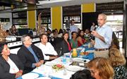 Demonstrando reconhecimento, admiração e respeito pelo trabalho realizado pelos profissionais da área, o prefeito Edvaldo Nogueira participou hoje, 15 de maio, Dia do Assistente Social, de um café da manhã promovido pelo Conselho Regional de Serviço Social - Sergipe (CRESS-SE), na Casa do Cuscuz. O evento marcou a data comemorativa e abriu a Semana do Assistente Social, que segue até a próxima sexta-feira. Depois de cumprimentar e parabenizar os assistentes sociais presentes, Edvaldo Nogueira recebeu do presidente do CRESS, Wilton Torres, uma carta aberta elaborada por representantes da entidade. Temos a certeza de que o prefeito da capital, que é um homem sensível e tem compromisso com a sociedade, está engajado na melhoria constante dos serviços prestados ao povo aracajuano pelos assistentes sociais. Por isso, estamos entregando primeiramente a ele este documento, que contém algumas reivindicações da categoria, disse o presidente, acrescentando que uma outra carta aberta será encaminhada ao governador Marcelo Déda. Recebi com muita alegria este documento. A luta de vocês é justa, é correta. Eu vou analisar esta carta com muito carinho para que a gente possa avançar cada vez mais na consolidação do trabalho da Secretaria Municipal de Assistência Social e Cidadania (Semasc). Quero que vocês tenham em mim um parceiro, um aliado, falou Edvaldo Nogueira aos assistentes sociais. Ele aproveitou para destacar os resultados positivos alcançados graças ao esforço da secretária municipal, Rosária Rabelo, e a toda a equipe da Semasc, a quem agradeceu as contribuições dadas no sentido de melhorar a qualidade de vida da população da capital. Eu fico feliz em ver que, apesar de a gente não ter feito tudo, a Prefeitura de Aracaju tem dado passos significativos para a diminuição das desigualdades. Tudo isso com muita seriedade, cuidado e competência. Com relação ao Programa Bolsa Família, por exemplo, a Prefeitura ganhou um prêmio nacional de transparência e ética por não ter nenhuma denúncia de irregularidades, ressaltou. Semana do Assistente Social Segundo a secretária Rosária Rabelo, que também participou do café da manhã, o momento é de comemorações e de reflexões a respeito da intervenção dos assistentes sociais. Para ela, a programação da Semana do Assistente Social, promovida pelo CRESS, em parceria com a Semasc, Universidade Federal de Sergipe (UFS), entre outros colaboradores, possibilita troca de experiências, aprendizagem e avaliação das ações dos profissionais da área em diversos ramos de atuação. Além de palestras, haverá debates e premiações. Este ano o tema é ´Desemprego, desigualdade, violência e 50 anos de profissão regulamentada´, lembrou o presidente do CRESS, revelando que espera que o evento contribua para a qualificação dos assistentes sociais, que têm um papel fundamental junto aos governos federal, estadual e municipal na construção de políticas que tragam resultados efetivos, em especial para a população economicamente menos favorecida.