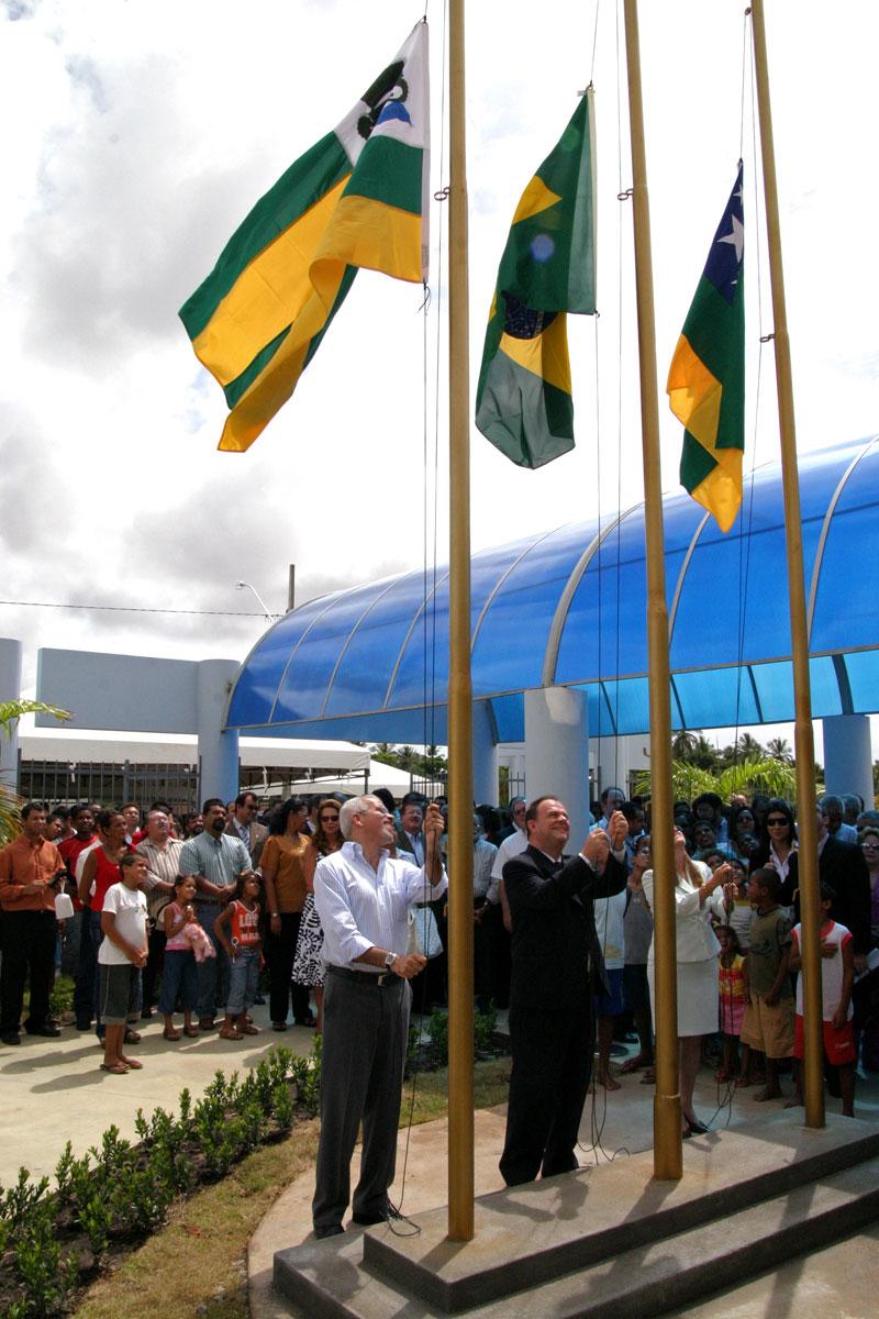 Aracaju ganhou um presente especial na manhã desta segunda-feira, dia 12. Faltando apenas cinco dias para completar 152 anos de vida, a capital recebeu da Prefeitura a maior escola pública do Estado. Localizada no bairro Santa Maria, a Escola Municipal de Ensino Fundamental Papa João Paulo II, que integra o Centro Educacional Vitória de Santa Maria, ocupa uma área de quase 3.000 m² e conta com quatro berçários, 16 salas de aula, banheiros, refeitório, brinquedoteca, área de lazer e videoteca. Ao todo, foram investidos aproximadamente R$ 2 milhões. O prefeito Edvaldo Nogueira participou da solenidade de inauguração da instituição de ensino, que tem capacidade para atender cerca de 700 crianças e adolescentes. Depois de hastear a bandeira de Aracaju e descerrar a placa inaugural, ele falou sobre a atuação da PMA no bairro Santa Maria e a preocupação em garantir à comunidade o pleno funcionamento dos serviços básicos, como saúde, educação, saneamento e segurança. “Em cinco anos, a Prefeitura de Aracaju investiu algo em torno de R$ 44 milhões no Santa Maria”, afirmou o prefeito, dizendo que entre todas as obras realizadas em sua gestão, o Centro Educacional é a mais importante. Para ele, uma boa formação educacional é essencial na vida de qualquer cidadão, já que é a educação que garante um futuro digno para crianças e adolescentes. “É por isso que é tão importante investir em educação. Só no ano passado, nós investimos, com recursos próprios da Prefeitura, R$ 100 milhões em educação”, completou Edvaldo Nogueira, lembrando que até maio a PMA vai entregar à população de Aracaju mais duas escolas, uma na Coroa do Meio e outra no Coqueiral. A secretária municipal de Educação, Tereza Cristina, que também participou da inauguração, ressaltou a importância da valorização e capacitação profissional. “Além da estrutura física e de equipamentos, é preciso ter o principal, que é o material humano. Nesse sentido, a Prefeitura tem uma política de qualificação permanente exatamente para garantir uma excelente qualidade de ensino”, destacou. Esforço conjunto O projeto do Centro Educacional Vitória de Santa Maria surgiu a partir de um censo educacional realizado pelo Ministério Público de Sergipe (MP-SE) em 2003. O levantamento mostrou que mais de 2.000 crianças e adolescentes do Bairro Santa Maria estavam fora das salas de aula. Diante da necessidade de resolver este problema, o MP-SE convocou a iniciativa privada, a União, o Governo Estadual e a Prefeitura Municipal para que juntos construíssem a maior escola pública de Sergipe em um dos bairros mais carentes da capital. Em dezembro de 2006 foi entregue o Colégio Estadual Vitória de Santa Maria, destinado ao ensino médio. Após três meses, a PMA concluiu a edificação da Escola Municipal de Ensino Fundamental Papa João Paulo II. Nas duas etapas do complexo educacional foram investidos R$ 8 milhões. Além dos recursos do Estado e do Município, foram aplicadas verbas oriundas da iniciativa privada. A maior parceira na concretização do projeto foi a Petrobras, mas outras empresas também se somaram na construção do Centro Educacional Vitória de Santa Maria, a exemplo da Fafen e do G. Barbosa. “Hoje o sonho de uma escola digna e estruturada foi realizado. Daí o nome: Vitória de Santa Maria. A expectativa é que todas as crianças do bairro estudem. A Centro Educacional comporta cerca de 3.000 alunos, o que é mais do que suficiente para atender as crianças e adolescentes que não estavam frequentando a sala de aula na época que que o Ministério Público realizou o censo. Isso só foi possível porque todos contribuíram e trabalharam por uma causa única, que é a melhoria da qualidade da educação no bairro Santa Maria”, disse o promotor do Núcleo dos Direitos da Educação do Ministério Público Estadual, Etélio Prado Júnior.