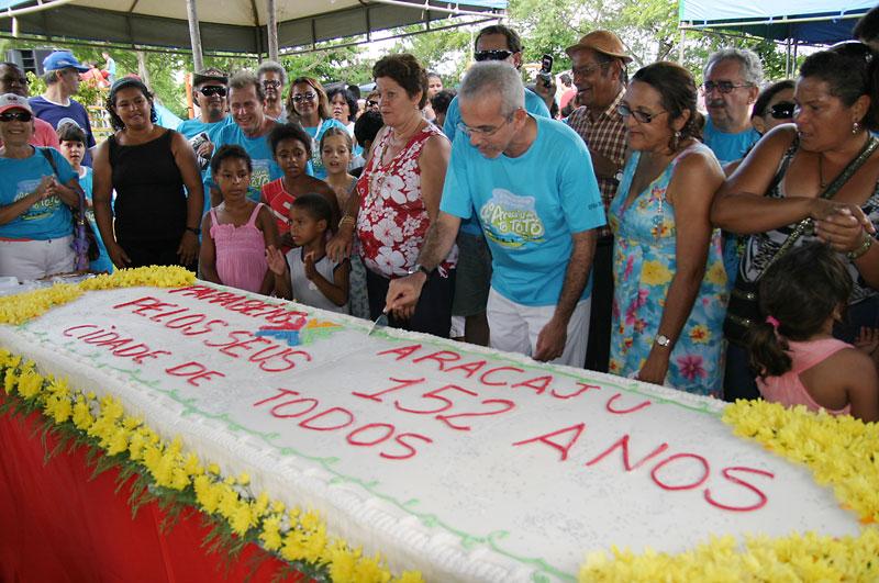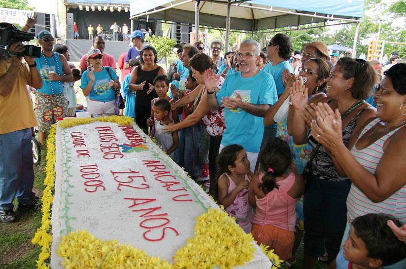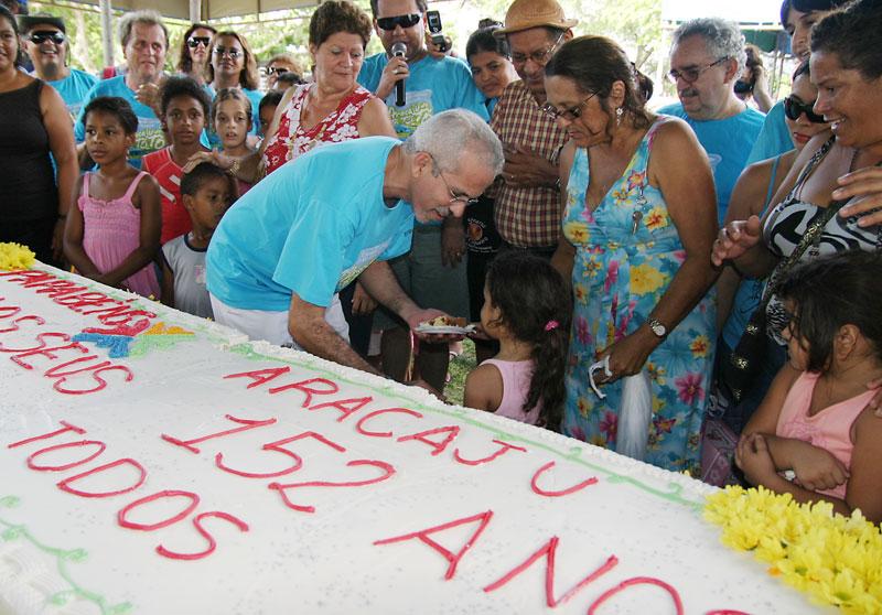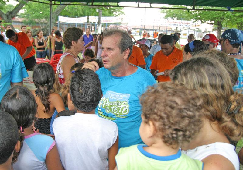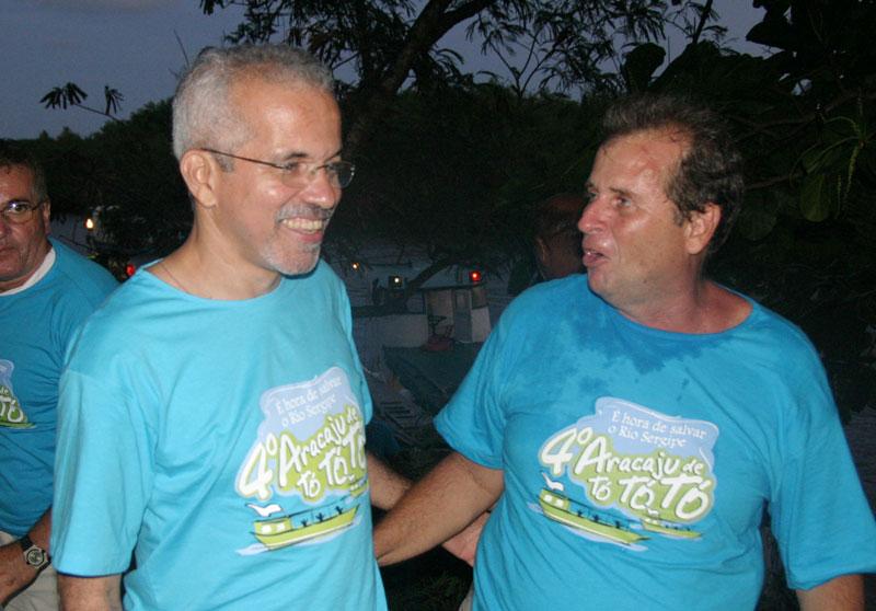 O rio Sergipe, motivo da fundação de Aracaju e da transferência da capital, foi hoje saudado por cerca de 1.500, que participaram do 4° Aracaju de Tó-Tó-Tó. No dia de seu aniversário de 152 anos, a cidade se encheu de cor e alegria com a passagem das tradicionais embarcações pelo leito de um dos principais rios do Estado. O evento, idealizado pelo jornalista Osmário Santos, teve o apoio da Prefeitura Municipal de Aracaju (PMA), por meio da Fundação Municipal de Cultura, Turismo e Esporte (Funcaju). Estamos recebendo da Prefeitura todo o auxílio estrutural em terra. E a festa está magnífica, disse Osmário, lembrando que o principal objetivo da barqueata é chamar a atenção da sociedade para a necessidade de preservação do rio Sergipe. O prefeito de Aracaju, Edvaldo Nogueira, participou do passeio. Antes de embarcar em um dos 23 tó-tó-tós que integraram a ´comitiva´ em defesa do rio, ele cantou Parabéns para a capital, sendo acompanhado por todos que estavam presentes. O primeiro pedaço do bolo vai para uma criança porque nossa capital é assim: jovem e cheia de beleza, falou o prefeito. Antes da partida, o aviso: Não joguem nada no rio. Desfrutem o passeio sem agredir o meio ambiente, disse o locutor, avisando que era hora de tomar lugar nas embarcações. Já nos tó-tó-tós, os participantes mostraram animação, cantando e dançando ao som do forró pé-de-serra, tocado ao vivo no interior das embarcações por grupos convidados. Os barcos saíram às 16 horas do Conjunto Inácio Barbosa e para lá retornaram já no início da noite. Mas a festa continuou. No palco montado pela PMA no local de partida e chegada, o forrozeiro Erivaldo de Carira entoou canções famosas, que lembraram as tradições do povo sergipano. Preservação Com o slogan ´É hora de salvar o rio Sergipe´, o 4° Aracaju de Tó-Tó-Tó alertou para a urgência da defesa do rio, que banha 26 municípios sergipanos e integra a principal bacia hidrográfica do Estado. Este ano, o evento cresceu e contou com a participação de uma parcela ainda maior da população, entre comunicadores, lideranças políticas, ambientalistas, estudantes e profissionais de diversas áreas. Toda a sociedade sergipana sabe que o rio Sergipe está poluído. A bacia do rio Sergipe é de grande importância, tanto econômica, quanto cultural. Sabemos que não dá para salvar um rio em uma semana, em um mês, em um ano. É um trabalho que vai levar muito tempo, mas tem que começar já. Por isso estamos pedindo socorro, destacou Osmário Santos. O rio Sergipe é fundamental para Aracaju e para todo o Estado. Não podemos deixar que ele seja degradado. É preciso que toda a população se conscientize e abrace a causa da preservação do nosso rio, completou Edvaldo Nogueira. Veja mais... Prefeito realiza homenagem a Inácio Barbosa