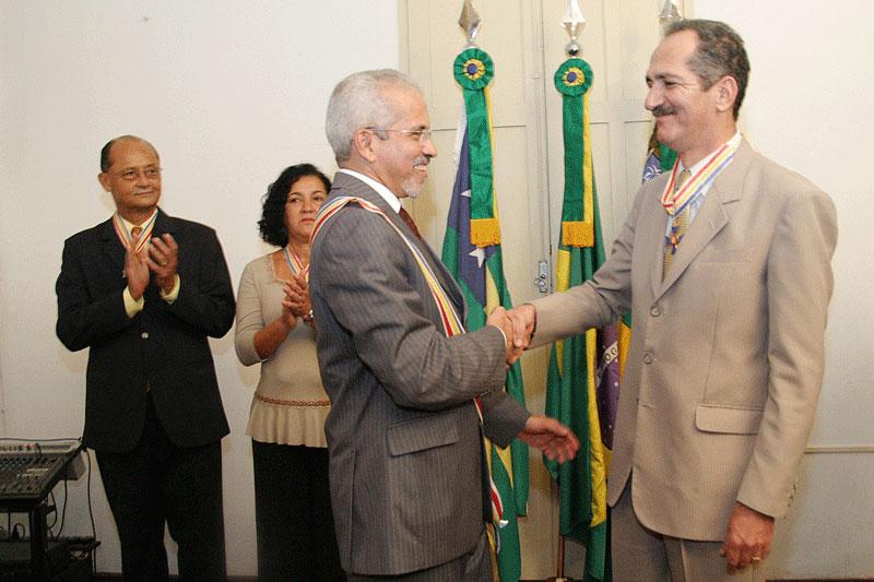Na tarde de ontem, quinta-feira, o prefeito de Aracaju, Edvaldo Nogueira, fez a entrega da Medalha de Ordem do Mérito Serigy ao ex-presidente da Câmara Federal, José Aldo Rebelo Figueiredo. O secretário municipal do Governo, Sílvio Santos, foi o chanceler da Ordem na ocasião. A comenda foi entregue no Palácio Inácio Barbosa, sede da Prefeitura Municipal de Aracaju. Na solenidade estavam presentes a deputada Estadual Tânia Soares; os vereadores Elber Batalha e Chico Buchinho; o líder da bancada do município na Câmara de Vereadores, Emanuel Nascimento; além de secretários municipais, presidentes de empresas municipais e imprensa. Edvaldo Nogueira ressaltou o significado de homenagear o ex-presidente da Câmara Federal. Aldo é um dos mais competentes políticos do país. Ele é um deputado federal que honra todo povo brasileiro pelo seu trabalho na Câmara. Um homem a quem o Brasil deve considerações, por isso a condecoração dessa medalha de grande oficial do Mérito Serigy. Como sergipano, admiro Aldo, comenta o prefeito. A Medalha do Mérito Serigy é a mais alta condecoração concedida pelo município. Para o deputado federal Aldo Rebelo é uma responsabilidade e uma honra receber essa medalha. Tenho honra pela homenagem e responsabilidade de corresponder como homenageado de Aracaju aos compromissos com a cidade e a população, declara Rebelo. Visita-cortesia Logo após a condecoração, Edvaldo Nogueira, Aldo Rebelo e Tânia Soares, foram ao Palácio Governador Augusto Franco para uma visita-cortesia ao governador de Sergipe, Marcelo Déda. No gabinete do Palácio, eles se reuniram com o governador, o vice Belivaldo Chagas e o secretário de Coordenação Política, Jorge Araújo. Aldo Rebelo comentou sobre a visita. Esta é uma visita a um político importante para o Brasil, como administrador e como liderança política nacional. Há uma grande expectativa que o Governo de Sergipe conduzido por Déda obtenha êxito no Estado e no Brasil, diz Aldo. Veja mais... Edvaldo Nogueira recepciona ex-presidente da Câmara Federal no aeroporto de Aracaju