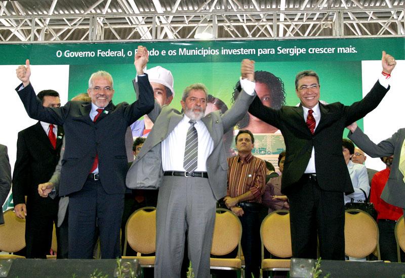 Uma das páginas mais importantes da recente história da capital sergipana foi escrita hoje, quinta-feira. Os autores foram o prefeito de Aracaju, Edvaldo Nogueira, o governador do Estado, Marcelo Déda, e o presidente Luiz Inácio Lula da Silva. Em solenidade ocorrida no Centro de Convenções Ministro José Hugo Castelo Branco, no Distrito Industrial de Aracaju (DIA), eles lançaram as obras do Programa de Aceleração do Crescimento (PAC) nas áreas de saneamento e urbanização para Sergipe, formalizando um investimento de R$ 98,3 milhões somente na capital. Através da assinatura do protocolo de cooperação federativa, o prefeito Edvaldo Nogueira firmou o compromisso de aplicar os R$ 85, 4 milhões provenientes do Governo Federal, R$ 66 do Governo do Estado, R$ 19,4 financiados pela Caixa Econômica Federal (CEF) e R$ 12,9 dos cofres municipais em projetos que vão beneficiar a população de bairros carentes. Pelo menos nos últimos 30 anos, Aracaju nunca tinha recebido um montante tão grande de recursos como este que estamos recebendo aqui, destacou o prefeito. Segundo ele, a conquista só foi possível porque pela primeira vez, Governo Federal, Governo do Estado e Prefeitura de Aracaju estiveram de mãos dadas construindo para o progresso da nossa cidade. O ministro das Cidades, Márcio Fortes, que também assinou o protocolo, destacou a união e sinergia entre as três esferas do poder público. Este não é um simples documento, mas o resultado de horas e horas de trabalho do prefeito e do governador, que lado a lado, irmanados, viabilizaram a liberação de recursos expressivos, que vão melhorar a qualidade de vida dos aracajuanos, disse. As localidades contempladas serão o bairro Santa Maria e o Coqueiral, no bairro Porto D´Anta. Entre os serviços que serão executados, estão a construção de 2.004 unidades habitacionais; a drenagem, terraplenagem e pavimentação de ruas e avenidas; e a reestruturação das redes de água e esgoto. Em seu discurso, o presidente Lula fez questão de destacar a importância de investir em saneamento básico. Um real investido nessa área são três reais a menos gastos em saúde, revelou. Os moradores do Santa Maria e do Coqueiral presentes receberam com fortes palmas o anúncio de melhorias. Tudo que vamos fazer será realizado nos locais que mais precisam da presença do poder público, o que mostra o compromisso da Prefeitura de Aracaju, do Governo do Estado e do Governo Federal com o desenvolvimento, a mudança e a melhoria da vida dos que mais precisam, frisou Edvaldo Nogueira. As obras, previstas em três projetos elaborados com a orientação do prefeito por uma equipe da Secretaria Municipal de Planejamento (Seplan) e da Empresa Municipal de Obras e Urbanização (Emurb) e aprovados pelos Ministérios da Cidade e da Casa Civil, devem ser contratadas ainda este ano. De acordo com a ministra da Casa Civil, Dilma Rousseff, foram priorizadas propostas detalhadas, com licença ambiental prévia e regularização fundiária, o que viabiliza o início imediato dos processos licitatórios. Ainda segundo ela, os recursos serão colocados imediatamente à disposição. Mais obras Além dos projetos estruturais no Santa Maria e Coqueiral a serem executados pela Prefeitura, os aracajuanos serão contemplados também com obras do PAC de responsabilidade do Governo do Estado, que vai investir R$ 303,4 milhões em saneamento e urbanização na capital e em Nossa Senhora do Socorro. Em Aracaju, estão previstas a construção da barragem e da Estação de Tratamento de Água (ETA) do rio Poxim e a ampliação do sistema de esgotamento sanitário e da rede de esgoto nos bairros Atalaia, Coroa do Meio, São Conrado, Grageru, Índio Palentim, Ponto Novo, Sol Nascente e Castelo Branco. O que estamos vendo hoje é algo que nosso povo sempre sonhou. Essa esperança só virou realização porque temos o presidente Lula, o prefeito Edvaldo Nogueira e o governador de mãos dadas, falou o governador Marcelo Déda. Programa de Aceleração do Crescimento O PAC foi lançado em janeiro deste ano pelo presidente Lula. Segundo Dilma Rousseff, nesta primeira etapa há uma maior concentração nas áreas de saneamento e urbanização. Esta fase é voltada para municípios das regiões metropolitanas e municípios com mais de 150 mil habitantes, que concentram a maior parte da população brasileira. Por conta desse critério, no Estado de Sergipe os municípios contemplados são Aracaju e Nossa Senhora do Socorro, explicou, dizendo que os investimentos vão beneficiar cerca de 900 mil pessoas. Ainda de acordo com ela, os projetos foram escolhidos porque modificam a qualidade de vida da população. Por ser um programa de aceleração do crescimento, ele tem uma concepção de crescimento com distribuição de renda. Entendemos que assegurar o acesso à infra-estrutura social e urbana é uma condição para distribuição correta de renda no país, destacou. Em seu discurso, Lula disse que só para obras de saneamento e urbanização, o Governo Federal, através do PAC, vai liberar R$ 40 bilhões para todo o Brasil. O ministro Márcio Fortes, lembrou o efeito multiplicador do Programa. As obras geram emprego e renda, movimentam a economia, além de melhorar a qualidade de vida da população, destacou. Depois da solenidade, o presidente Lula seguiu para o Palácio de Veraneio do Estado, onde almoçou com o governador Marcelo Déda, o prefeito Edvaldo Nogueira e outras autoridades, que também acompanharam logo em seguida o embarque do presidente no aeroporto de Aracaju. Homenagem Antes da solenidade de lançamento das obras do PAC, o prefeito Edvaldo Nogueira participou da entrega da medalha da Ordem do Mérito Nacional, no grau de comendador, ao ex-governador de Sergipe Seixas Dória, feita pelo presidente Luiz Inácio Lula da Silva. A Ordem Nacional do Mérito é a mais alta comenda da República Brasileira, concedida a personalidades como o maestro Heitor 