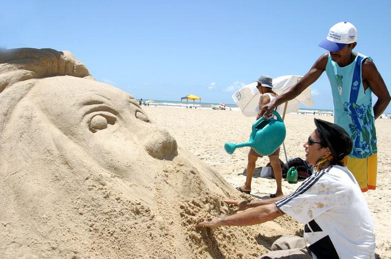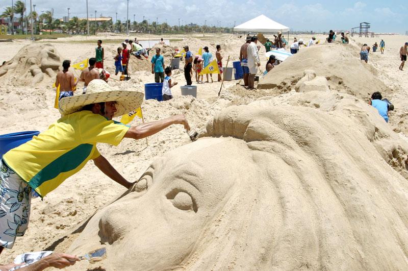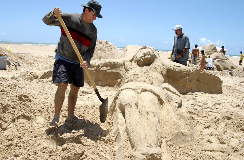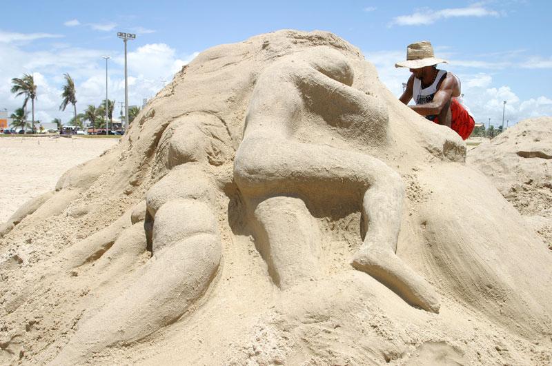 A Prefeitura de Aracaju promove, pelo sexto ano consecutivo, o Concurso de Esculturas na Areia. A disputa entre os 18 artistas plásticos sergipanos inscritos começou no início da manhã desse sábado, dia 10, e segue até às 15h30 da tarde, no que está se tornando uma tradição do Projeto Verão, coordenado pela Fundação Municipal de Cultura, Turismo e Esportes (Funcaju) na praia de Atalaia. Com temas os mais variados possíveis, os competidores passam uma mensagem por meio da areia esculpida em formas humanas e de animais, que terão uma curta duração, mas deixarão o seu recado. Essa é a intenção dos participantes, como Donato, natural do município sergipano de Cumbe, que todos os anos participa do concurso e dessa vez escolheu como tema ´A fórmula da água´. A idéia é retratar a sobrevivência do ser humano, a luta do ser humano na busca pela água, o que hoje já é motivo de muitos conflitos, explicou, ressaltando a importância da iniciativa da Prefeitura. É uma oportunidade muito grande, não só para os artistas plásticos mostrarem seus talentos, mas também do público poder observar os trabalhos, acrescentou o artista, campeão em 2006. Outro campeão está retornando ao concurso depois de alguns anos sem competir. Zeus, artista plástico com mais de 30 anos de carreira, conta que o segredo de trabalhar com a areia é usar muita água. O concurso tem que ter bastante incentivo das pessoas e dos órgãos públicos, porque é uma coisa gostosa de se ver e tem tudo para progredir ainda mais, disse. Esse ano seu tema é ´O Cristo crucificado´. Jucó é artista plástico aracajuano e esteve presente em todas as edições do concurso de escultura na areia. Dessa vez ele escolheu a família para inspirar seu trabalho. É uma crítica ao mal-estar da família, para que as pessoas olhem mais para suas próprias famílias, disse, enquanto ainda definia as formas na areia. Mesmo não estando totalmente prontos, os trabalhos atraiam o público. Áurea Gomes Souza, recente moradora da cidade, na saída da praia deu uma passada no local das esculturas para observar de perto. Estou achando bem interessante, mesmo sem estar tudo pronto, mas alguns já conseguimos ver. E minha filha também ficou curiosa, queria saber o que era e para que era..., contou ao lado da filha de 8 anos. Julgamento e resultado As 18 equipes inscritas (artista e dois ajudantes) têm até as 15h30 da tarde de hoje, sábado, para concluir as esculturas. Depois de prontas elas serão julgadas pelos seguintes critérios: tridimensionalidade, auto-sustentação da peça, originalidade e criatividade, harmonia da composição. O resultado será conhecido ainda hoje, após a comissão julgadora analisar os trabalhos, o que deve acontecer até as 17 horas. Fazem parte do júri a professora de Artes Visuais da Universidade Federal de Sergipe (UFS) Adriana Dantas, o artista plástico Marcelo Roque Belarmino e o também professor da UFS Alex Araújo. A premiação oferecida é de R$ 2.000 para o para o vencedor; R$ 1.500 para a segunda melhor escultura e R$ 1.000 para o terceiro colocado.