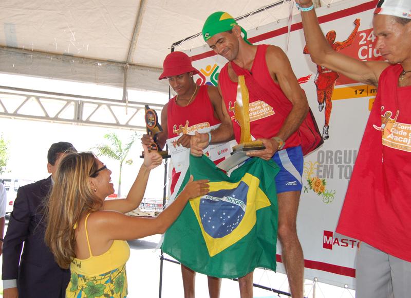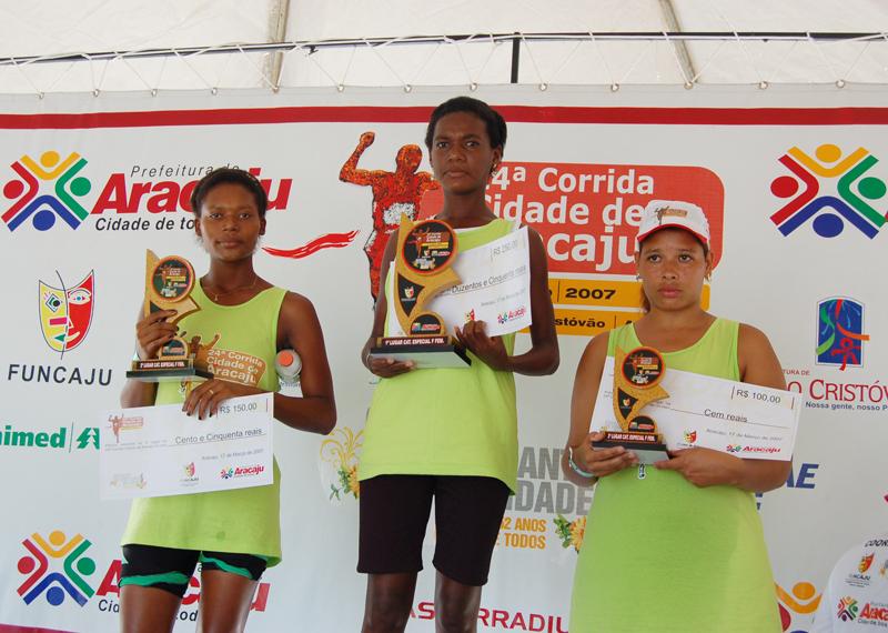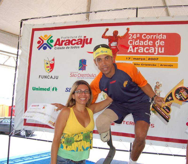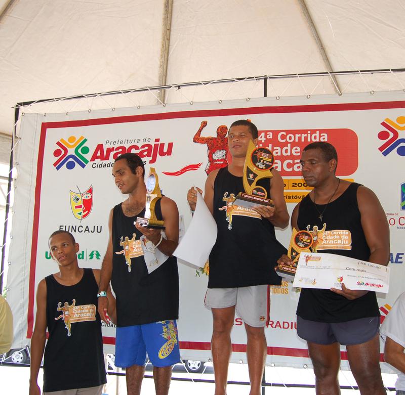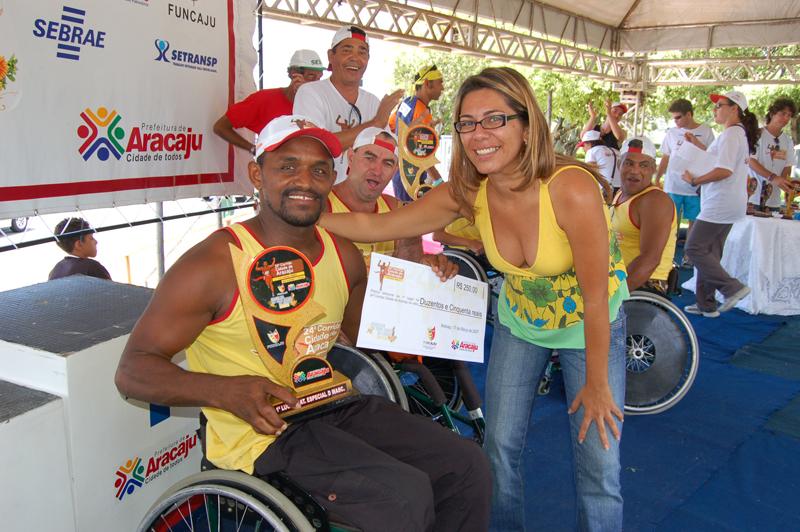 Em comemoração ao aniversário da capital, a Fundação Municipal de Cultura, Turismo e Esportes (Funcaju), promoveu na manhã de hoje, sábado, a Corrida Cidade de Aracaju para Portadores de Necessidades Especiais. Que reuniu 289 atletas de cinco categorias. Deficientes visuais, físico-andante, físico-cadeirante, auditivo e mental leve. Os atletas saíram da Praça da Bandeira, e percorreram 1.500 metros, até o ponto de chegada na Praça Tobias Barreto. De acordo com a presidente da Funcaju, Lucimara Passos, a política de inclusão social dos portadores de necessidades especiais é prioritária para administração do prefeito Edvaldo Nogueira. Os portadores de necessidades especiais são pessoas com capacidade produtiva e são cidadãos como qualquer outro individuo que tem os mesmos direitos de acesso a todos os serviços prestados pela Prefeitura de Aracaju, declara Passos afirmando que os portadores de necessidades especiais não podem ficar a margem da sociedade. Todos as pessoas tem direito à educação, a cultura, ao lazer e ao esporte. E a Funcaju sempre vai promover atividades para que Aracaju continue sempre sendo uma cidade de todos, complementou Lucimara. A categoria com mais inscritos foi a de deficientes mentais leve, com 212 participantes. E não estavam presentes apenas atletas de Sergipe. Brasília, São Paulo, Minas Gerais e Pernambuco também tiveram seus representantes, como informou a diretora esportiva para atletas especiais da Funcaju, Vilma Rabelo. Todos os participantes receberam um chip para ser colocado no tênis, uma camisa e um número, para identificação na linha de chegada, explicou Rabelo. Edson Dantas, 40 anos, Bi-campeão da São Silvestre (2003/2005) e 3º colocado na Maratona de Nova York (2002) na categoria para deficientes físicos, também veio à Aracaju para prestigiar o aniversário da cidade e participar tanto da Corrida para Portadores de Necessidades, como da Corrida Cidade Aracaju, que parte de São Cristóvão e tem um percurso de 25 quilômetros. Edson, que teve uma perna amputada depois de um acidente há 14 anos, ganhou medalha de ouro nos cinco mil metros rasos no circuito Para-olímpico e foi convocado para participar da equipe de atletismo do Pan-americano do Rio de Janeiro. O esporte é a maneira mais fácil de resgatar a auto-estima, disse o atleta que se mostrava confiante para a prova. Eu corro pela vida, completou Dantas. Aleanderson Augusto Rodrigues Oliveira, 28 anos, participou na categoria para deficientes visuais. O atleta está se preparando desde 2006 com um grupo de portadores da mesma necessidade, no estádio João Hora de Oliveira, mais conhecido como Caldeirão. Seu acompanhante, Emilton Vieira Santos, que é pedestrianista (pratica corrida de rua), disse que a velocidade e o ritmo são estabelecidos por Aleanderson, e como acompanhante ele irá apenas guiar seu parceiro. Nós já temos uma estratégia para ganhar, disse o competidor. As avenidas Barão de Maruim e Ivo do Prado tiveram um fechamento parcial, coordenado por uma equipe da Superintendência Municipal de Transporte e Trânsito (SMTT). O evento contou também com o apoio do SAMU e do Corpo de Bombeiros. A terceira edição da Corrida Cidade de Aracaju para Portadores de Necessidades Especiais bateu o recorde de inscrições e, pela primeira vez, premiou em dinheiro os três primeiros colocados de cada categoria. Confira agora a lista dos vencedores. Vencedores Auditivos (feminino) 1- Josenilda Silveira (Aracaju, SE) 2- Vanda Andrade Santos (Aracaju, SE) 3- Ítula Alves (Aracaju, SE) Auditivos (masculino) 1- Eduardo Sidney Gabriel (Governador Valadares, BA) 2- Deric Jorge de Santana Santos (Aracaju, SE) 3- Gilson Santos Correia (Aracaju, SE) Mentais (feminino) 1- Maria Edvania dos Santos (Aracaju, SE) 2- Maria de Lurdes dos Santos (Aracaju, SE) 3- Emeliana Nascimento Torres (Aracaju, SE) Mentais (masculino) 1- Lucas Santos (Aracaju, SE) 2- José Antones Souza (Aracaju, SE) 3-Damião de Jesus Silva (Recife, PE) Visuais (feminino) 1- Rosilene Alves dos Santos (Aracaju, SE) 2- Rosineide Alves dos Santos (Aracaju, SE) Visuais (masculino) 1- José Wellington dos Santos (Aracaju, SE) 2- Gilmar Pereira dos Santos (Aracaju, SE) 3- José Fernando dos Santos (Aracaju, SE) Cadeirantes (feminino) 1- Luciene Ferreira dos Santos (Aracaju, SE) 2- Isabel de Jesus (Aracaju, SE) Cadeirantes (masculino) 1- Gilvan dos Santos (Aracaju, SE) 2- Givaldo Rodrigues (Aracaju, SE) 3- Julio Cezar dos Santos (Aracaju, SE) Premiação Primeiro colocado R$250,00 Segundo colocado R$150,00 Terceiro colocado R$100,00 Veja mais... Canta Colina marca aniversário da capital ao som da música clássica