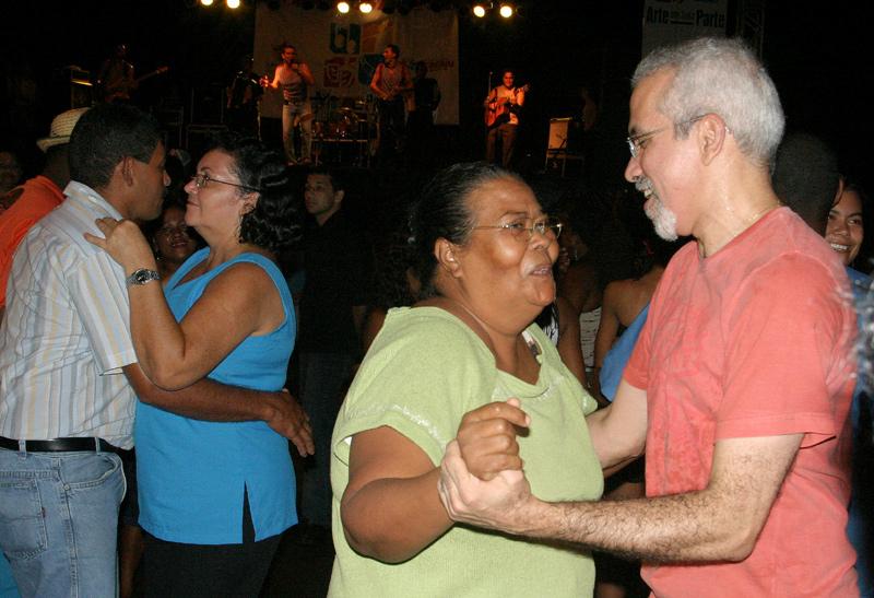 O último sábado, dia 19, ficou marcado para a comunidade do bairro América. A Prefeitura da Cidade, por meio da Fundação Municipal de Cultura, Turismo e Esportes (Funcaju), levou o circuito ´Arte em Toda Parte´ com uma programação diversificada para as crianças, adolescentes, jovens e adultos. Os moradores começaram a participar do evento às 8 horas, na praça Franklin Roosevelt, com várias atividades recreativas e esportivas, além de 20 oficinas, biblioteca móvel, exibição de filmes, apresentações de teatro com o grupo Mamulengo de Cheiroso e shows com as bandas XoteBaião e Guere-Guere. De acordo com a presidente da Funcaju, Lucimara Passos, o ´Arte em Toda Parte´ mostrou a sua consolidação nessa quarta edição. Nós inserimos elementos novos e a comunidade recebeu muito bem o circuito, principalmente as oficinas e as atividades recreativas que tiverem um incremento assim como a leitura através da biblioteca atraíram um grande público durante todo o dia. E isso tudo demonstra que o Arte em Toda Parte´ realmente está no caminho certo, e está consolidado enquanto um evento de extrema importância para a formação de público, porque é um espaço para o artista sergipano mostrar a sua obra e o seu trabalho e um espaço para a população da cidade estar conhecendo a cultura local, declara Passos. Lucimara acrescenta que a prefeitura está muito feliz porque a aceitação do circuito é grande, não só com o projeto em si mas com o contato com o artista e com a cultura da cidade que muitas vezes as pessoas não conheciam e não tinham acesso. Durante todo o dia a praça Franklin Roosevelt esteve repleta de pessoas circulando e participando de todas as atividades. Um das atrações da noite foi a banda Guere-Guere, que é do bairro América, permanecendo na proposta do projeto de prestigiar também o que está sendo produzido no bairro, ressalta a presidente. Esse projeto é um grande sucesso, uma iniciativa sem comparação da Prefeitura de Aracaju porque ela traz a cultura junto para a população dos bairros, para as pessoas que não tem condições de idade, por questões financeiras de participar de eventos culturais promovidos por empresários sergipanos , eles têm a oportunidade com o Arte em Toda Parte de ver os artistas aqui no próprio bairro. Muitas crianças participando, muitas pessoas de idade, todo mundo participando muito ativamente e essa é sem dúvida um compromisso com uma responsabilidade social que envolve a cultura de uma forma em geram. E eu diria que esse foi um dia inesquecível para a comunidade, afirmou o músico da banda XoteBaião, Vinicius Nejaim. Moradora do bairro há 55 anos, a aposentada Núbia Santos Barbosa, trouxe os filhos,netos e sobrinhos para aproveitar o circuito Arte em Toda Parte. Nós aqui do bairro América nunca tivemos um evento como esses, nós mal temos condições de levar as crianças para um passeio e hoje isso aqui parecia um sonho para eles, com tantas atividades, cinema, teatro, biblioteca, oficinas, os meninos ficaram até sem saber o que fazer e o que assistir. Hoje realmente foi um dia muito especial e depois que eu dancei com o prefeito então, comentou Núbia. Para Roberto Filho, de 7 anos de idade, o filme procurando Nemo foi a melhor atração. Meus netos brincaram e participaram do evento o dia todo, ninguém quer ir embora, foi um dia de muita alegria e satisfação para toda comunidade, disse Maria do Carmo. A Guarda Municipal, a Policia Militar e agentes de trânsito da Superintendência Municipal de Transportes e Trânsito (SMTT) permaneceram durante todo o evento fazendo a segurança do local. Veja mais... Prefeito participa do Projeto ´Arte em Toda Parte´ no bairro América