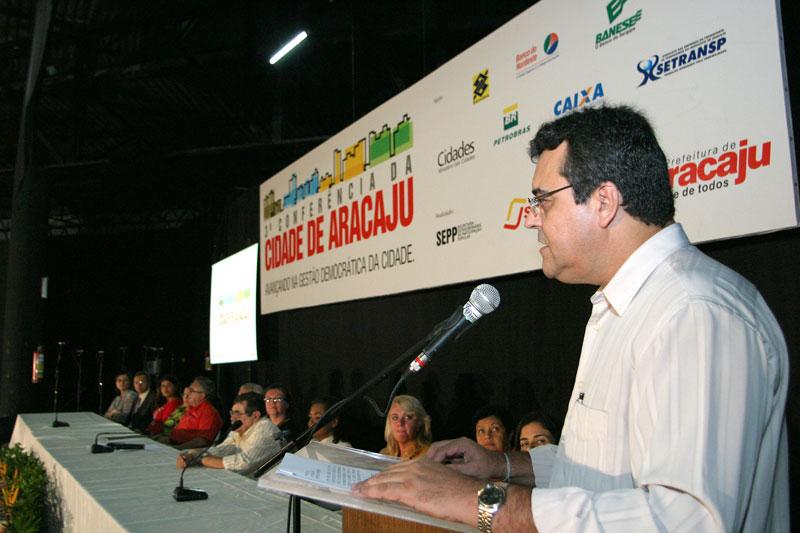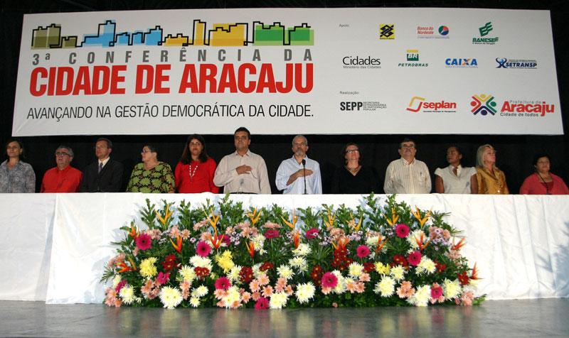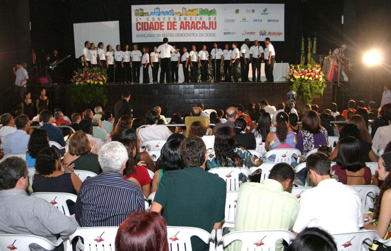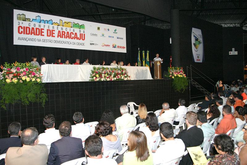 Na noite de ontem, quinta-feira, o prefeito de Aracaju, Edvaldo Nogueira, realizou a abertura da 3ª Conferência da Cidade de Aracaju, no Espaço Emes. A Conferência é uma ação da Prefeitura Municipal de Aracaju (PMA), por meio das secretarias municipais de Planejamento (Seplan) e Extraordinária de Participação Popular (SEPP), que acontece a cada dois anos. Seu objetivo é dar oportunidade ao cidadão de interagir com a administração pública e o resultado da conferência servirá de base para traçar os novos rumos estruturais do município nas áreas de arquitetura e urbanismo. Cerca de mil pessoas assistiram à cerimônia de abertura realizada pelo Coral da Petrobras, que tocou o hino nacional brasileiro regido pelo maestro Antônio Sérgio Teles Chagas. Também houve a apresentação do dançarino performista César Leite, com sua boneca Genoveva. A conferencista da palestra ´O Desenvolvimento das Cidades´ foi Elizabeth Alessi Walter Gonçalves, representante do Desenvolvimento Urbano da Caixa Econômica em Aracaju. Na ocasião, o Edvaldo Nogueira disse que é um orgulho muito grande participar pela primeira vez do evento como prefeito de Aracaju. Nós precisamos sentir a alma da cidade, ela tem o tijolo, o cimento, o concreto, mas também tem alma. O mundo moderno exige do poder público que inclua a sociedade em suas decisões e foi pensando nisso que colocamos em destaque na nossa gestão a participação popular, afirmou. Ainda na abertura da Conferência, o prefeito reafirmou a conquista de importantes recursos do Programa de Aceleração do Crescimento (PAC) para serem investidos em Aracaju. Aproveito para dizer que conseguimos trazer através do PAC, em reunião com a ministra Dilma Rousseff [chefe da Casa Civil], ao lado do governador Déda, R$ 98 milhões para serem investidos nas zonas periféricas de Aracaju, informou. Edvaldo disse ainda que o investimento irá se concentrar nos bairros Coqueiral e Santa Maria. Vamos construir no município de Aracaju mil casas populares no Santa Maria. Serão 30 milhões nos bairros da zona norte da cidade e mais 60 milhões na zona sul. Quero encerrar com um verso de um cantor que gosto muito, Raul Seixas: ´Sonho que se sonha só é só um sonho que se sonha só, mas sonho que se sonha junto é uma realidade´, informou Edvaldo. O secretário Municipal de Planejamento, Luciano Pimentel, disse que a Conferência promete trazer importantes propostas que contribuam para a cidade. Quando o prefeito Edvaldo convoca as diversas camadas sociais para discutir a cidade e seu espaço social é algo extraordinário e fundamental. É muito importante que a Prefeitura invista grandes recursos em obras estruturais. Temos certeza que ao final do dia teremos propostas que ajudem no desenvolvimento urbano, destacou. A secretária do Estado de Planejamento, Lúcia Falcon, ficou emocionada no evento. Estou emocionada de estar aqui, pois em 2003 o governo Lula criou o Ministério das Cidades e convocou imediatamente o Congresso da Cidade. É um momento histórico, estão aqui presentes a União, o Estado e o município de Aracaju juntos, com um mesmo ideal. No Estado hoje, quase 20 mil pessoas participam do Planejamento do Desenvolvimento Territorial e Participativo de Sergipe em 74 municípios com a participação popular, relatou. A 3ª Conferência da Cidade de Aracaju tem o apoio do Banco do Nordeste, Banco do Brasil, Caixa Econômica Federal, Petrobras, Banco do Estado de Sergipe (Banese), Ministério das Cidades e Sindicato das Empresas de Transporte de Passageiros de Aracaju (Setransp). Estiveram presentes os secretários do Município Jéferson Dantas (Finanças); Valmor Bezerra (Emurb); Luciano Pimentel (Seplan); Rômulo Rodrigues (Sepp); secretário Adjunto de Comunicação Rafael Galvão; Bosco Rolemberg (Chefia de Gabinete); Sílvio Santos (Governo); Carlos Magno (Fundat); Coronel Magno Silvestre (Guarda Municipal); Marcos Ramos (Saúde); Antônio Samarone (SMTT); Tereza Cristina (Educação). Além de representantes de inúmeros órgãos como a Professora Vera Lúcia França, representando o conselho de desenvolvimento urbano e ambiental; Marcos Antônio Queiroz, representando o superintendente da Caixa Econômica Federal em Sergipe, Gilberto Occhi; Ana Amélia Vieira, gerente da agência Setor Público do Banco do Brasil; Welinton Costas, presidente do Crea; Danusa Silva Menezes, presidente da Adema; entre outros. Também estiveram presentes os vereadores Rosângela Santana, Robson Viana, Fábio Henrique, além do secretário de Estado das Cidades e da Integração Municipal, Bosco Costa e representando o governador de Sergipe Marcelo Deda, a secretária do Estado de Planejamento, Lúcia Falcon. PROGRAMAÇÃO Hoje, sexta-feira Abertura: Coral Canarinhos de Aracaju 8 h Instalação da mesa - 8h20 Leitura e Aprovação do Regimento - 8h30 Palestras - 8h30 Tema 1: Programa Nacional de Habitação, Plano de Aceleração do Crescimento e III Conferência da Cidade Palestrante: Inês Magalhães (secretária Nacional de Habitação) Tema 2: Política de Desenvolvimento Urbano e Intervenções nas Cidades. Palestrantes: Luciano Azevedo Pimentel (secretário Municipal de Planejamento), Wellington Costa (presidente do Conselho Regional de Engenharia e Arquitetura - Crea/SE) Tema 3: Gestão Associada nos Serviços Públicos de Limpeza Urbana e Manejo dos Resíduos Sólidos no Âmbito da Lei do Saneamento e da Política Federal de Saneamento Básico Palestrante: Nadja Limeira Araújo (gerente de Projeto da Secretaria Nacional de Saneamento Ambiental) Tema 4: Plano de Desenvolvimento Territorial Participativo de Sergipe Palestrante: Maria de Lúcia de Oliveira Fálcon (secretária de Estado do Planejamento) Encerramento Almoço - 12h30 Grupos de trabalho - 14h Participação dos conferencistas nos 10 grupos de trabalho Temáticas: - Universalização dos Serviços da Saúde; - Universalização do Ensino Público de Qualidade; - Garantia de S