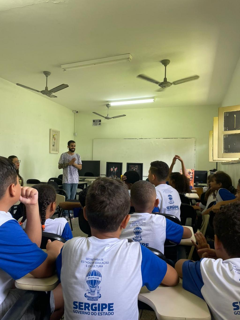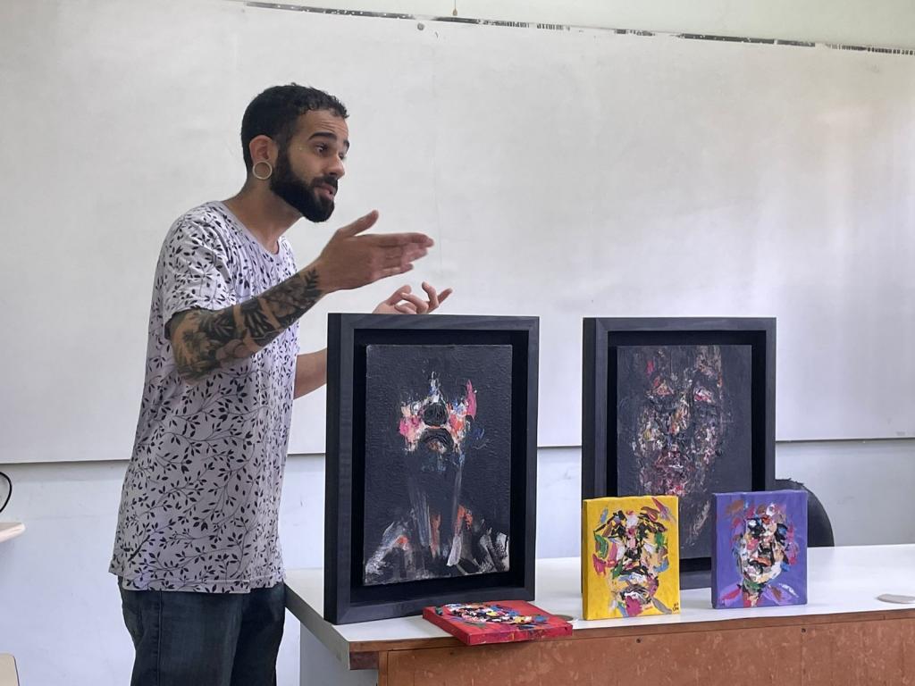 Para apresentar o tema com desenhos e diferentes pinturas, o artista Vinícius Tavares, professor de artes visuais da Escola Oficina de Artes Valdice Teles (EOAVT), conversou com os alunos e apresentou curiosidades e dicas para a criança poder começar a desenhar e desenvolver o interesse por esta linguagem artística.