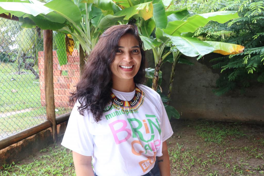 A professora da Emef Maria Carlota de Melo, Edenise Tavares Freire, explica que as atividades propostas na Semana do Brincar são essenciais para o fortalecimento dos vínculos dos jovens e crianças com amigos e familiares.