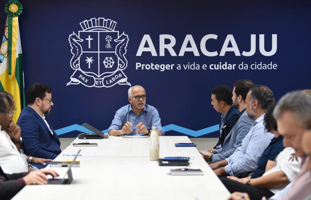 O prefeito Edvaldo Nogueira recepcionou, nesta terça-feira, 23, na sede da Prefeitura de Aracaju, integrantes do Banco Interamericano de Desenvolvimento (BID). Eles estão na cidade para uma avaliação do andamento dos projetos executados no município com recursos do financiamento firmado pela gestão municipal com a organização financeira internacional. Em Aracaju, os projetos somam mais de R$ 300 milhões e incluem obras grandiosas, como a construção da avenida Perimetral Oeste e a completa reforma do Parque da Sementeira.