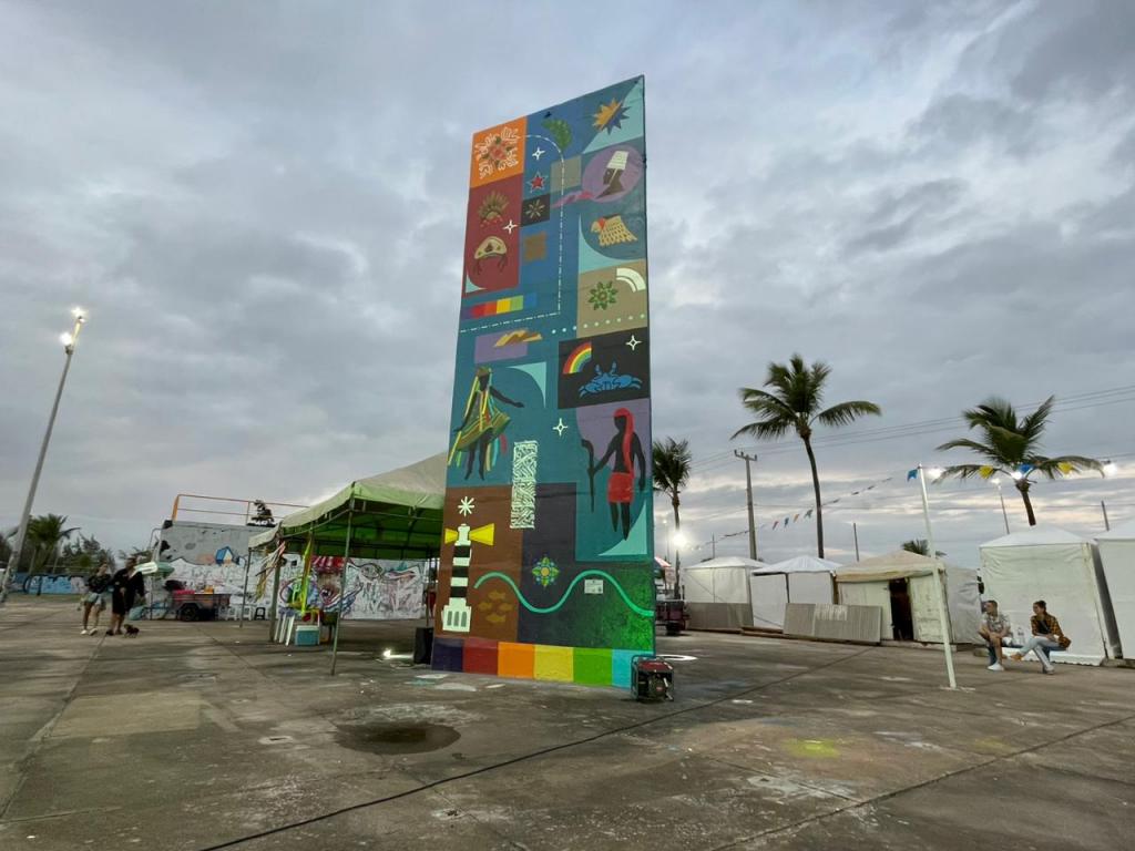 "Essa era a dimensão que a Funarte queria para os murais desse prêmio, que fossem expostos em áreas turísticas, públicas e administradas pelo poder público, com o propósito de contribuir para a cena cultural da cidade. Na Orla da Atalaia, alcançamos esse objetivo graças aos vários estímulos culturais que o espaço recebe, como o som de calçada, a vila de artesanato, movimentos musicais e rodas de capoeira”, explica Marcelo.