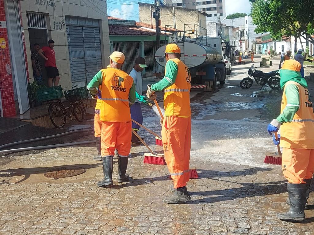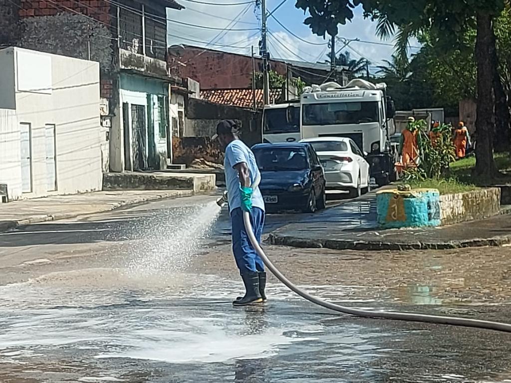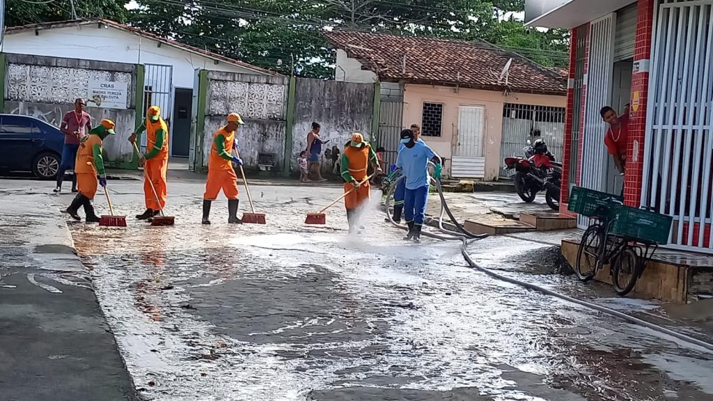 O trabalho da Empresa Municipal de Serviços Urbanos (Emsurb) foi iniciado na segunda (29) e, nesta terça-feira, 30, grande parte do serviço foi concluído, tanto nas residências como nas vias da localidade que, entre os dias 23 e 28, ficaram, em sua grande parte, inundadas.