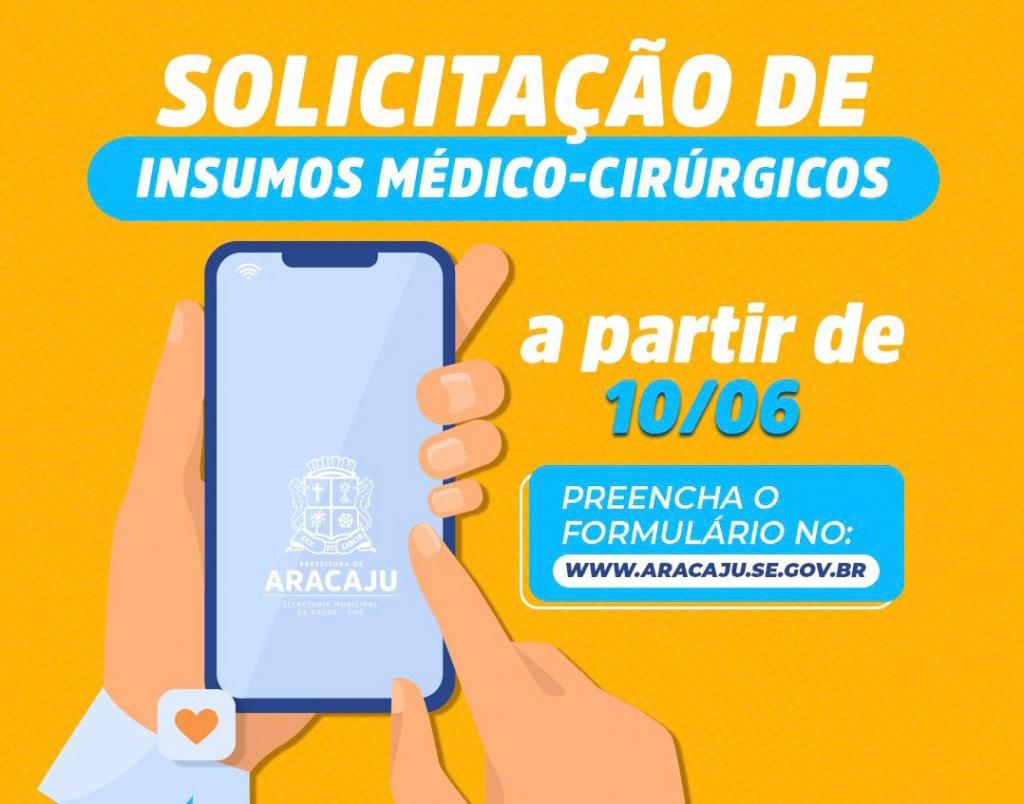 A Secretaria Municipal da Saúde (SMS) facilitará o processo de solicitação de insumos médico-cirúrgicos para uso domiciliar de pacientes acamados ou com mobilidade reduzida, o qual deverá ser realizado, a partir do próximo sábado, dia 10, mediante o preenchimento do formulário online disponível no site da Prefeitura de Aracaju.