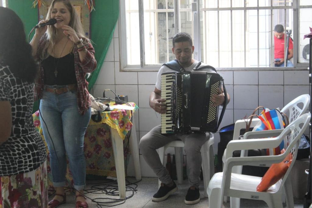 Durante toda a tarde, os beneficiários do programa e frequentadores do Cras puderam confraternizar, buscar o atendimento das equipes e ouvir música ao vivo ao som de Rebecca Melo e Missinho do Acordeon.