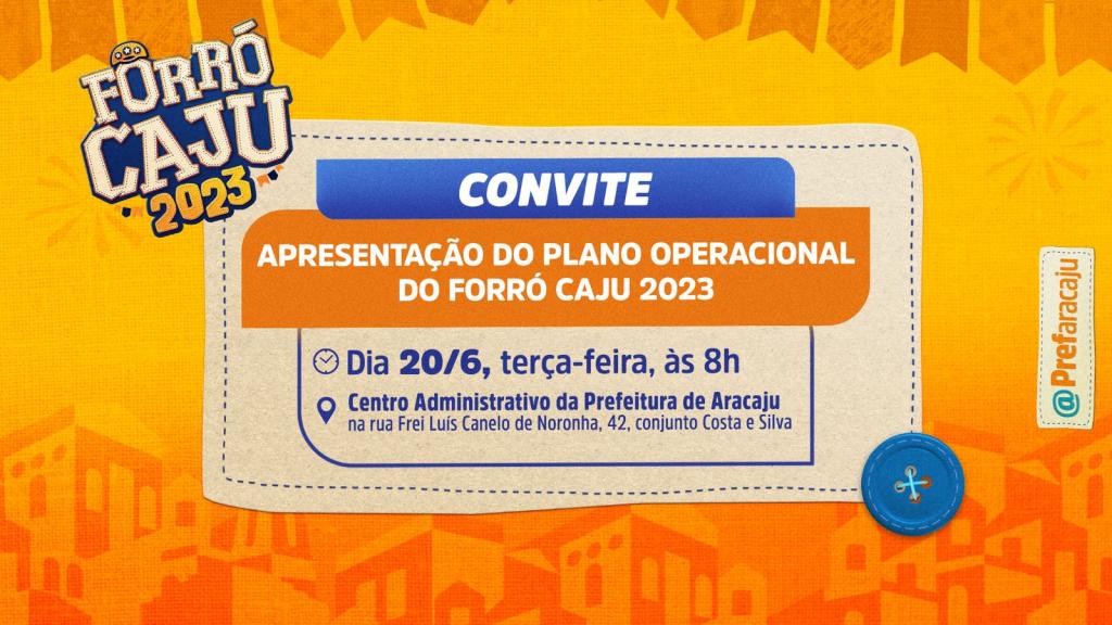 A Prefeitura de Aracaju convida a imprensa para a coletiva de apresentação do Plano Operacional do Forró Caju 2023, o qual envolve esquemas de segurança e de trânsito e as estrutura dos serviços da Saúde e da Assistência Social.