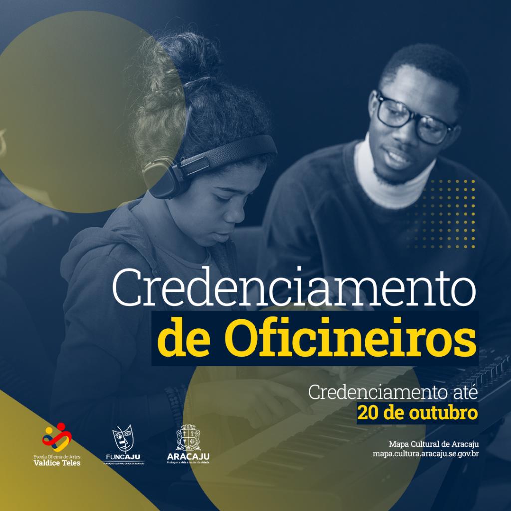 A Fundação Cultural Cidade de Aracaju (Funcaju), por meio da Escola Oficina de Artes Valdice Teles (EOAVT), publicou edital para credenciamento de novos oficineiros, o qual permanece aberto o dia 20 de outubro. O credenciamento é feito por meio do Mapa Cultural e tem como objetivo dar suporte à ampliação da grade de oficinas da escola no segundo semestre de 2023.