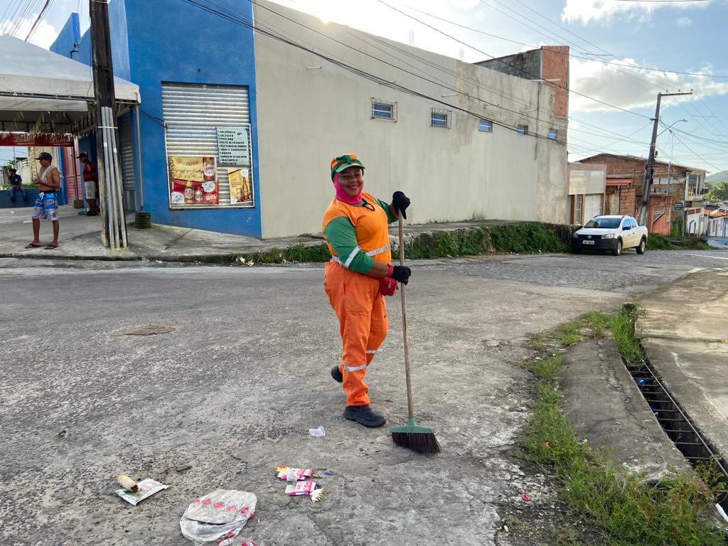 Quem acorda cedo para manter as ruas da cidade limpa é a agente de limpeza Ana Souza, de 44 anos, que contagia a todos com sua alegria e forró na ponte do pé. Ao realizar os serviços, ela ressalta como o trabalho ajuda a se conectar com as pessoas. “Eu amo trabalhar aqui! Sou feliz e posso dizer que criei um ciclo saudável de amizade. Graças aos trabalhos, tenho garantido os mimos e as necessidades dos meus cinco netos”, detalhou com orgulho.