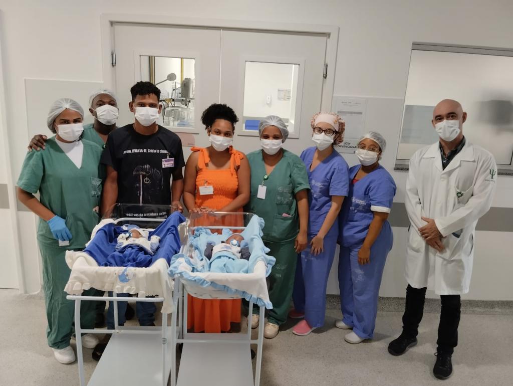 O casal Gilma dos Santos Conceição, 25, e Aparecido Nunes dos Santos, 27, do município de Pacatuba, chegou à Maternidade Municipal Lourdes Nogueira (MMLN) no dia 20 de maio em busca de atendimento, após percorrer outras unidades. Com gravidez gemelar e o rompimento da bolsa amniótica, Gilma recebeu atendimento imediato e deu à luz aos gêmeos Tadeu e Tobias. Após 37 dias na unidade, por onde passaram por procedimentos e terapias específicas, recebendo os cuidados da equipe multidisciplinar, o casal retorna para casa com seus dois filhos estabilizados.