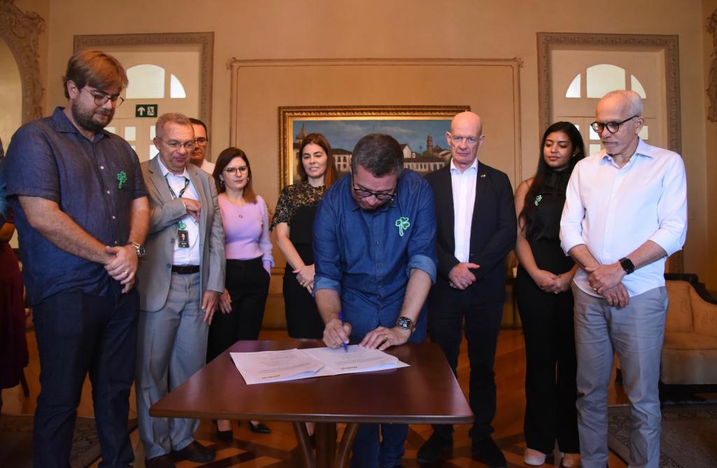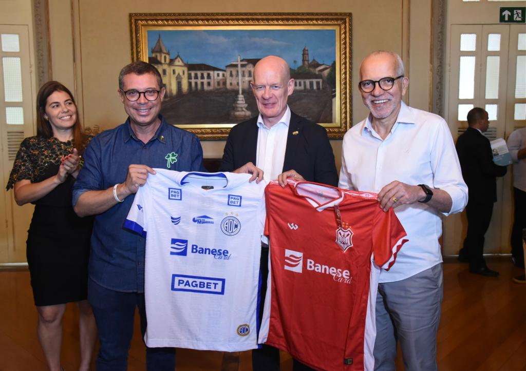 O prefeito Edvaldo Nogueira acompanhou, nesta terça-feira, 27, a agenda do embaixador da Irlanda no Brasil, Seán Hoy, em Aracaju. Ao lado do governador Fábio Mitidieri e do representante do país europeu, o gestor da capital participou de uma visita guiada às instalações do Palácio Museu Olímpio Campos, cujo foco foi apresentar a história de Sergipe ao embaixador, assim como a importância política e cultural do prédio. Na ocasião, também foi firmado um convênio entre o Governo do Estado, o Banco do Estado de Sergipe, Banese, e a empresa Mulvi, para garantir condições especiais aos microempreendedores sergipanos que utilizam máquinas de cartão.