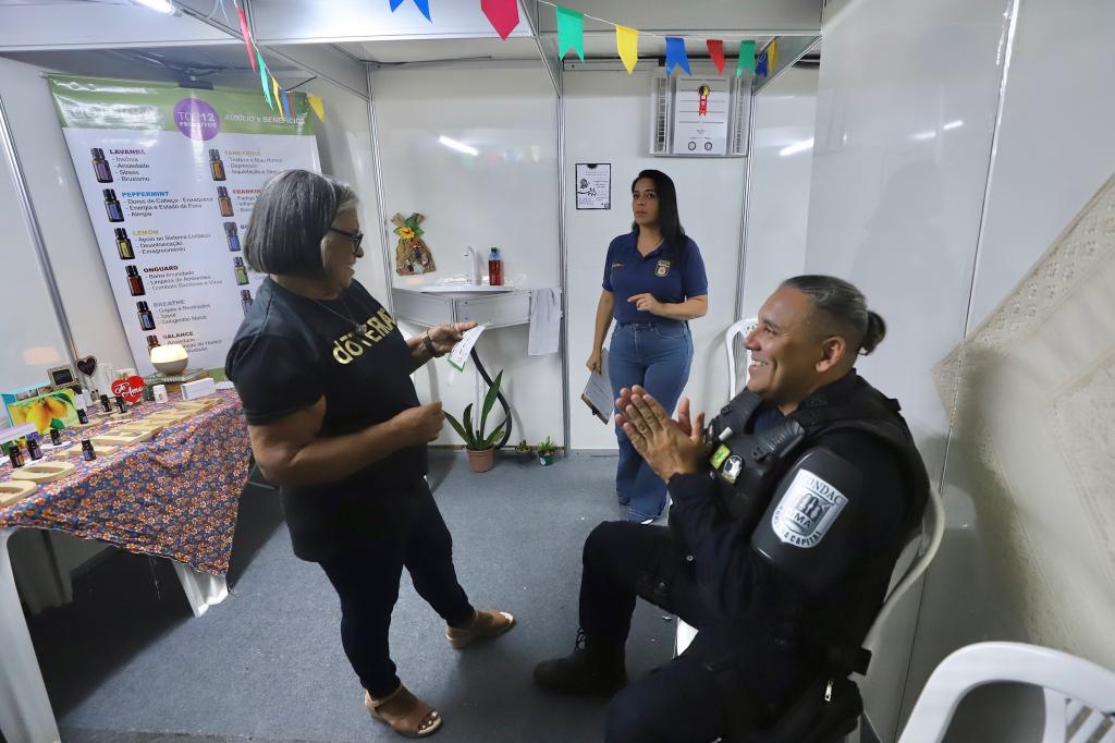 “Temos como objetivo promover o bem estar e saúde para os nossos guardiões. Trazemos atividades terapêuticas como reflexologia, aromaterapia, aferição da pressão, escalda pés, massagem, e com isso, promovemos para os nossos colegas que estão trabalhando na arena um pouco de cuidado e acolhimento, e o público só tem a ganhar, pois os nossos guardiões estão bem, sem estresse. A gente trabalha com óleos essenciais que produzem relaxamento, aliviam a tensão, dor de cabeça”, explicou.