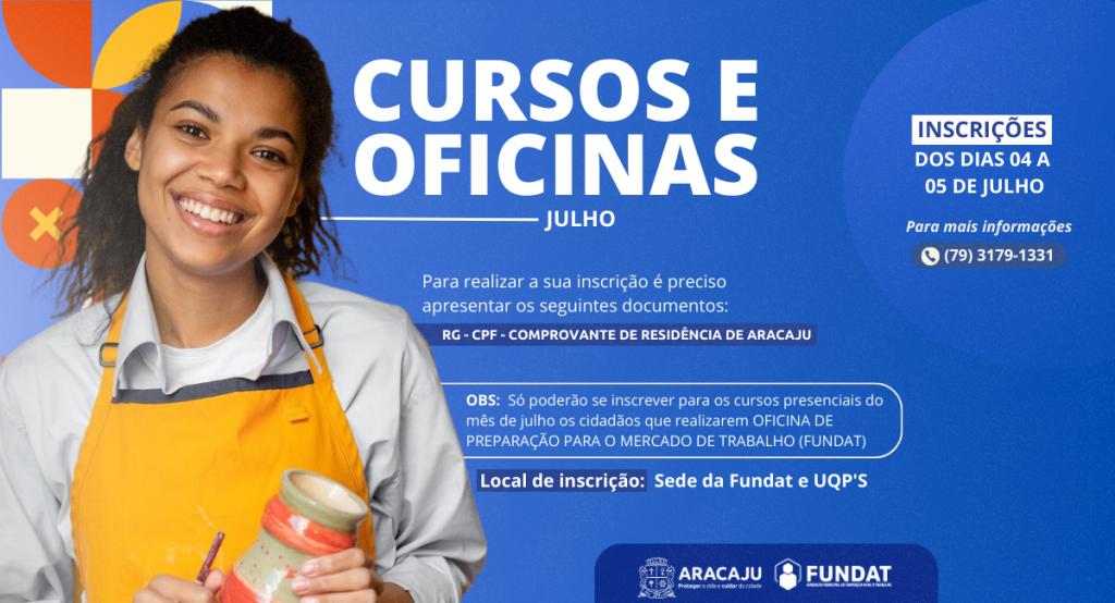 Quem deseja se qualificar e estar mais preparado para ingressar ou retornar ao mercado de trabalho terá 36 oportunidades gratuitas em julho. Neste mês, a Prefeitura de Aracaju, através da Fundação Municipal de Formação para o Trabalho (Fundat), irá oferecer mais de 2.500 vagas em cursos dos mais variados segmentos, oportunizando conhecimento e aumentando as perspectivas para quem deseja garantir um emprego formal ou mesmo uma renda extra.