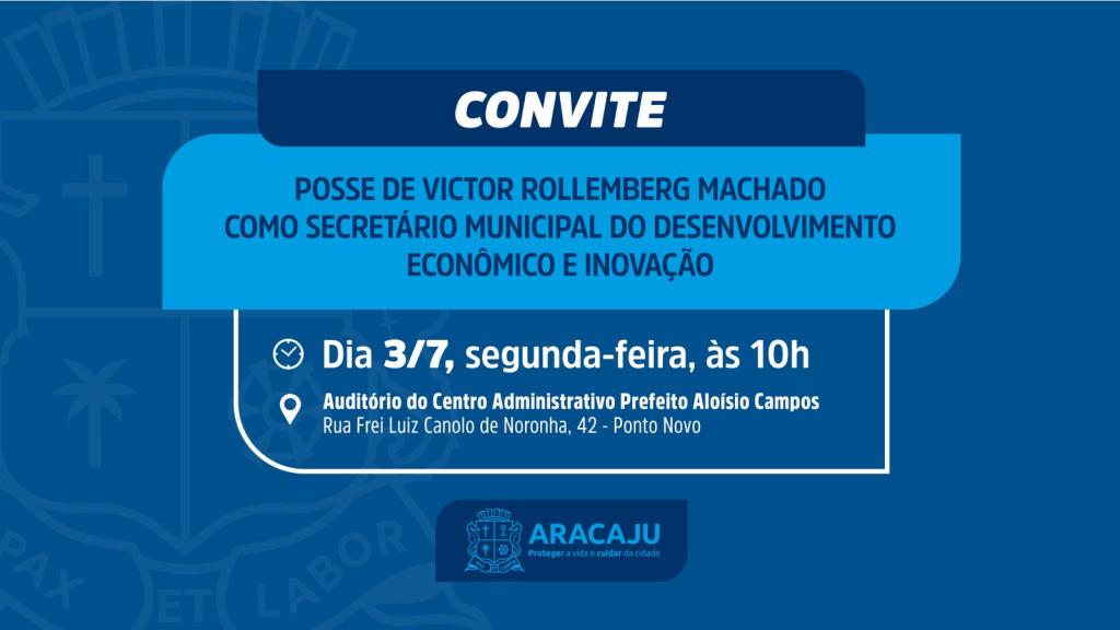 A Prefeitura de Aracaju convida a imprensa para a cerimônia de posse do novo secretário municipal do Desenvolvimento Econômico e Inovação, Victor Rollemberg Machado.