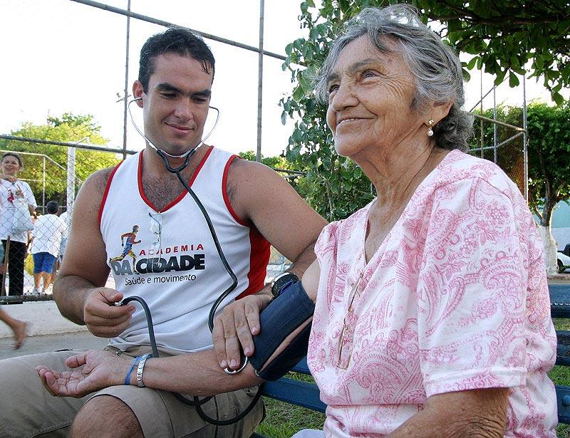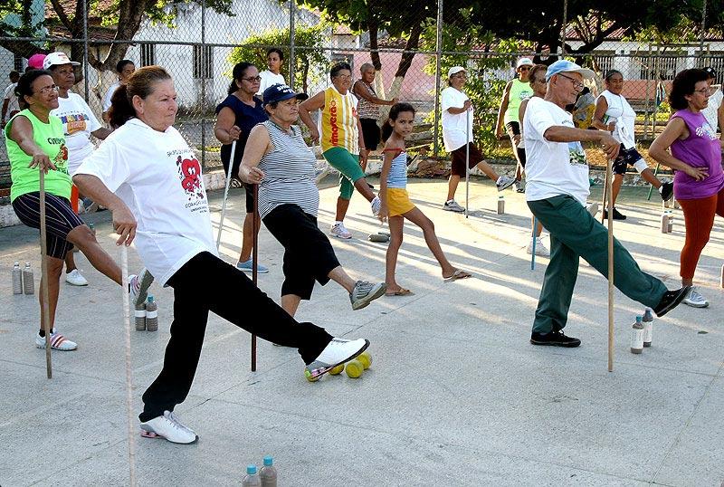 Centenas de pessoas cuidam da saúde ao ar livre com o Programa Academia da Cidade Saúde e Movimento, implementado pela Prefeitura de Aracaju por meio da Secretaria Municipal de Saúde (SMS). No conjunto Médici I, a praça Nivaldo Menezes é o ponto de encontro, três vezes por semana para quem quer cuidar do bem estar físico. Implementado há três anos, o programa está presente em 15 diferentes pontos da cidade. De acordo com o supervisor do programa, que também dá aula no conjunto Médici I, o grande objetivo é realizar uma atividade física visando a promoção da saúde. Aqui no Médici I temos em torno de 250 inscritos e uma média de 150 pessoas frequentadores assíduos. O programa é voltado exclusivamente para adultos, mas temos uma demanda muito grande de pessoas com mais de 50 anos, destacou. Todas as pessoas inscritas, antes de começarem as atividades, respondem a uma série de questões que revelam o histórico de saúde de cada um. A partir dessas informações, a equipe composta por professor e estagiários de educação física e mais um avaliador, realiza um trabalho de avaliação que mede, entre outras coisas, flexibilidade, força física, condicionamento cardio-respiratório e a condição corporal. Além disso, uma vez por semana é checada a pressão arterial do usuário e, a cada três meses é feita uma avaliação geral de aptidão física. Seguindo o perfil de cada individuo, é preparado um protocolo de atividades que incluem caminhada adiantada, ginástica localizada e alongamento em com 50 minutos de duração. A gente alonga, prepara a musculatura para caminhada de 20 minutos, depois pegamos o material, bastões e pesos, para mais 20 minutos de localizada e no final fazemos um alongamento, explicou o professor. Mais qualidade de vida Em 2005 fiz um checape geral porque queria fazer uma atividade e a médica disse que eu poderia fazer qualquer uma, tentei hidroginástica, mas não continuei. Mas desde que começou a academia aqui no bairro, em abril, que eu venho sempre e adoro, os professores são legais e além da ginástica é uma terapia . A gente tá sempre se encontrando para comemorar os aniversários e eu gosto muito, disse Juliana Bomfim, usuária e presidente da Associação de Moradores. O caso de Maria Ione Ribeiro é um pouco diferente. Por já ter sofrido um enfarte e possuir hipertensão, recebeu a recomendação médica de praticar caminhadas. A academia da Cidade foi uma coisa muito importante, necessária e muito boa, porque estamos cuidando da saúde. Muita gente precisa, mas nem todo mundo pode pagar uma academia, disse, confirmando que os nove meses de atividade regular já estão lhe rendendo bons resultados. Depois que comecei já estou me sentindo melhor. Antes qualquer coisa me cansava, eu respirava pouco, não podia cantar por isso e hoje já canto na igreja, por isso enquanto tiver aqui no bairro eu vou frequentar, afirmou confiante Maria Ione, moradora há quase 36 anos do conjunto Médici I. Não apenas os exercícios físicos proporcionam uma melhor condição de saúde, mas também uma maior socialização, o crescimento do ciclo de amizades e a afetividade vivida. O professor Valter Filho confirma esse benefício aos praticantes de atividades regulares. A gente observa em nossos relatórios que realmente tem diminuído a ingestão de medicamentos, melhorou a composição corporal, o controle da glicemia e diminuição da hipertensão. A idéia principal é que as pessoas melhorem a qualidade de vida e de saúde, que a atividade física se torne um hábito de vida para essas pessoas, relatou.