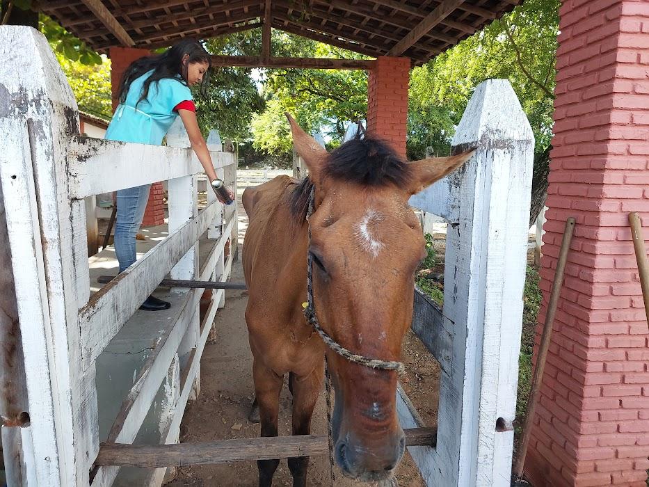 Ao chegar ao Centro de Apreensão de Animais, após sua captura, os equinos são examinados por uma equipe veterinária, recebendo tratamentos adequados caso haja ferimentos ou se identificado algum quadro de desidratação.